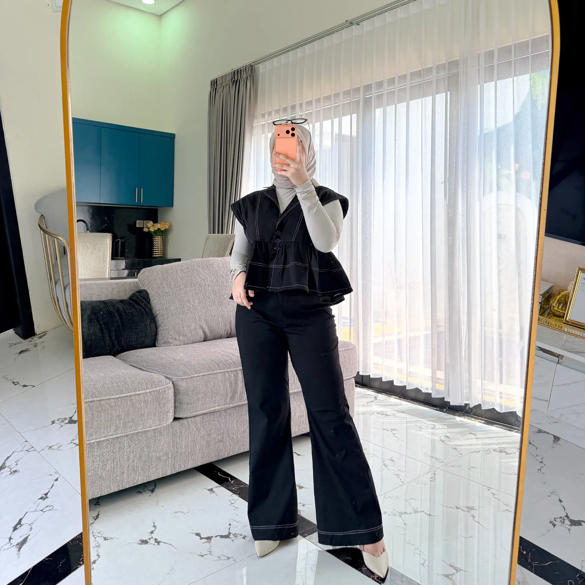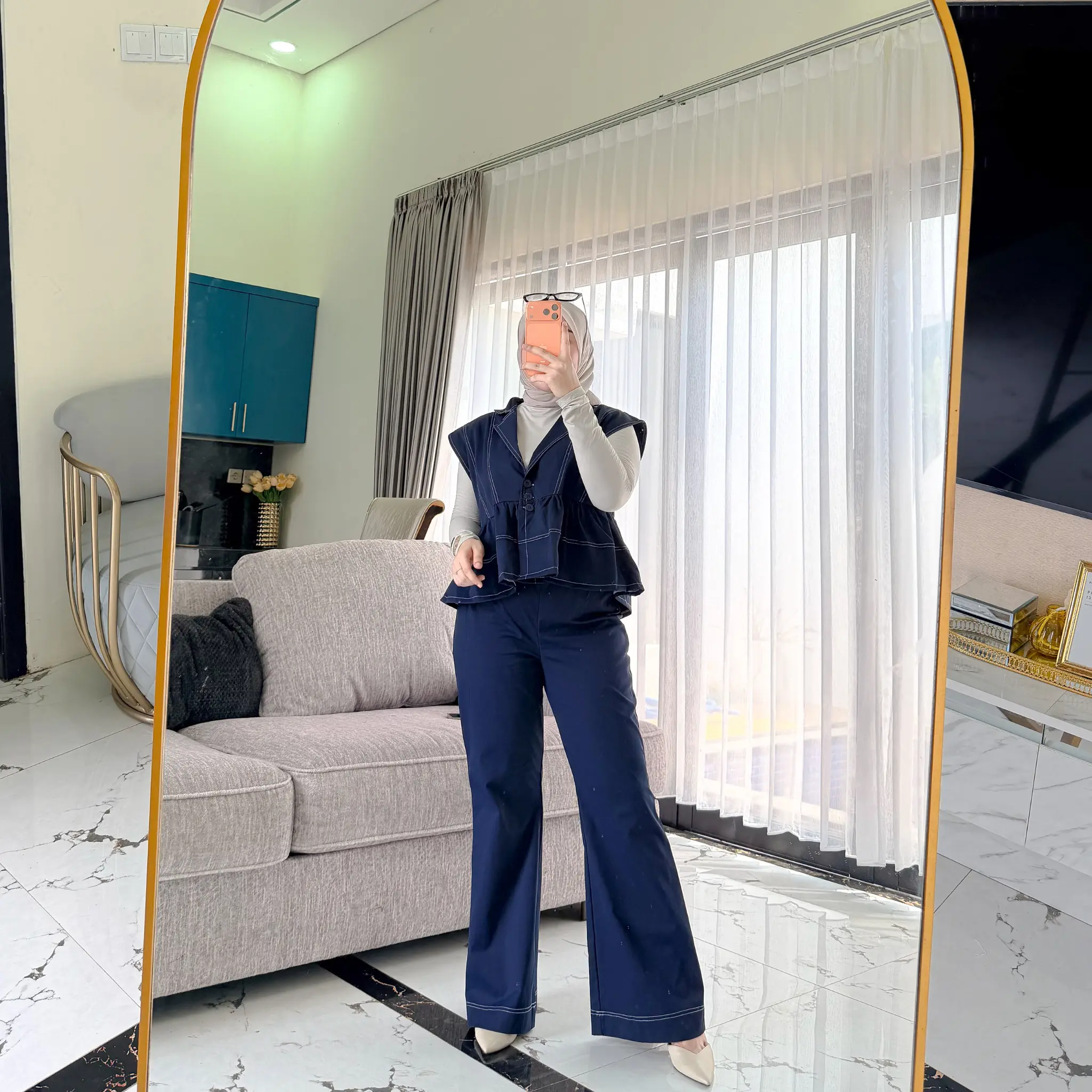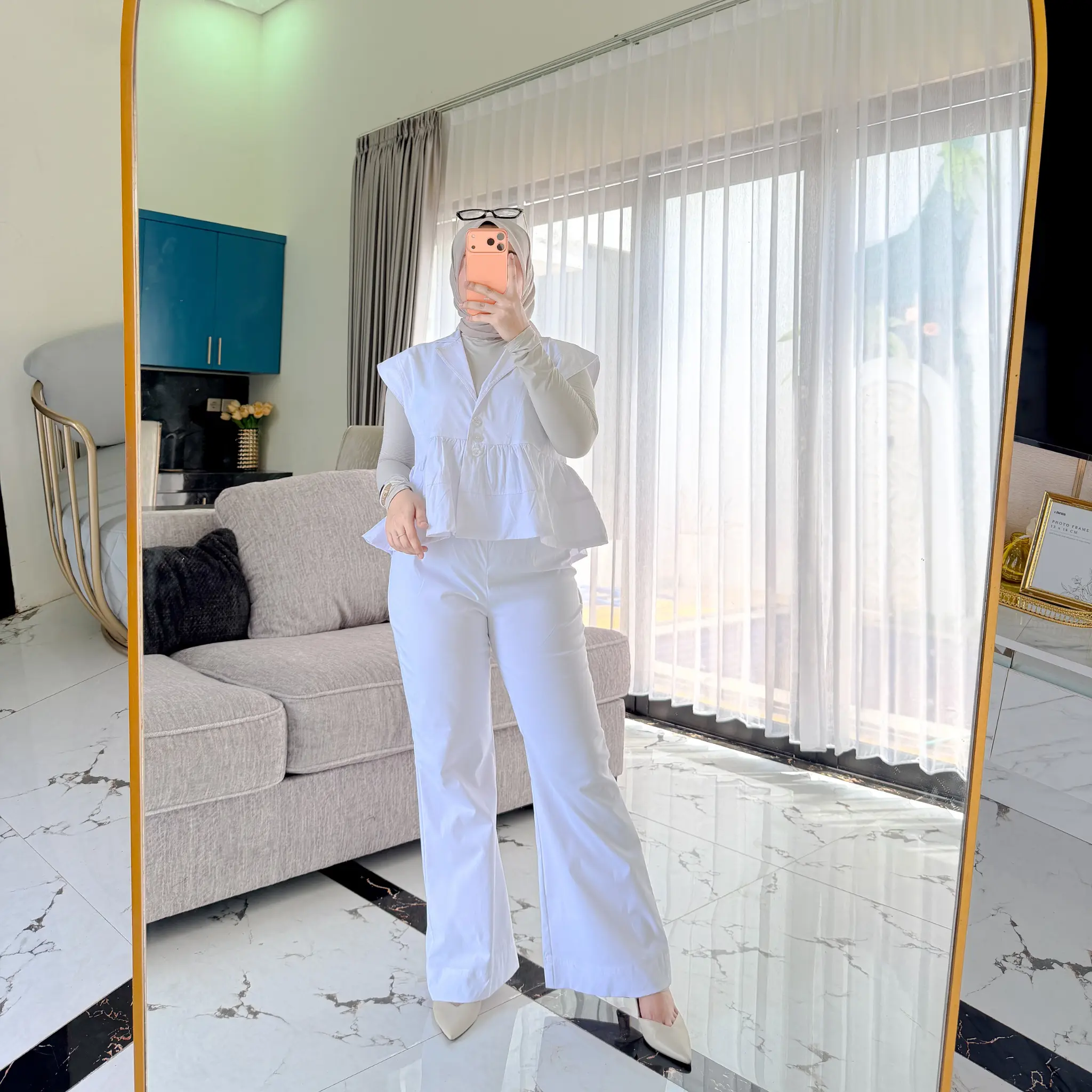 Jennie Set Vest Cotton Castela Premium – Setelan Vest Celana Wanita Elegan Kekinian Nyaman