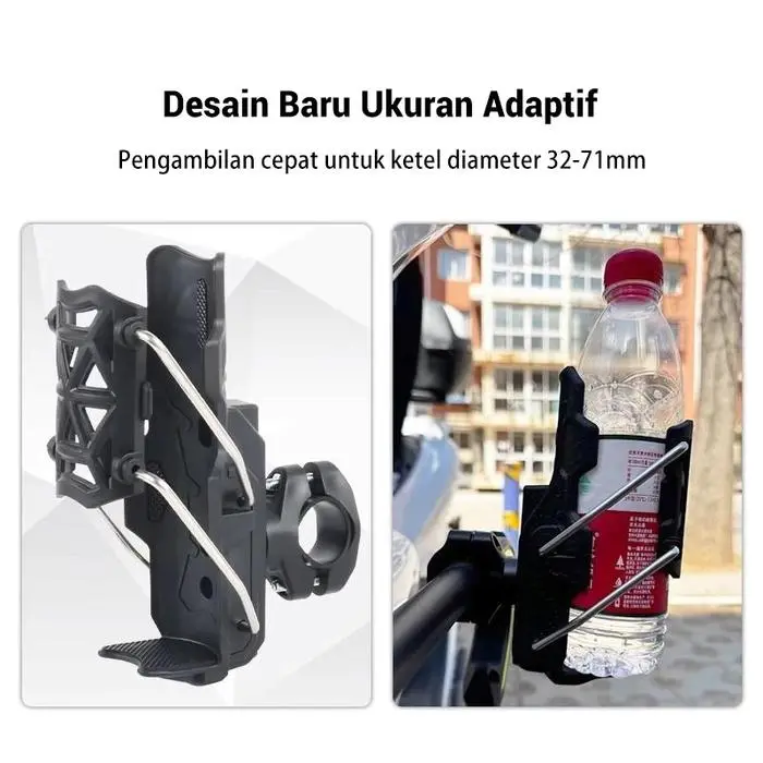 Desain Diameter Gelas Adaptif:Struktur inovatif ini secara otomatis beradaptasi dengan botol air dengan diameter mulai dari 32-77 mm, memungkinkan akses dan penempatan yang cepat, memenuhi kebutuhan berbagai ukuran botol air, dan memudahkan akses saat bersepeda.