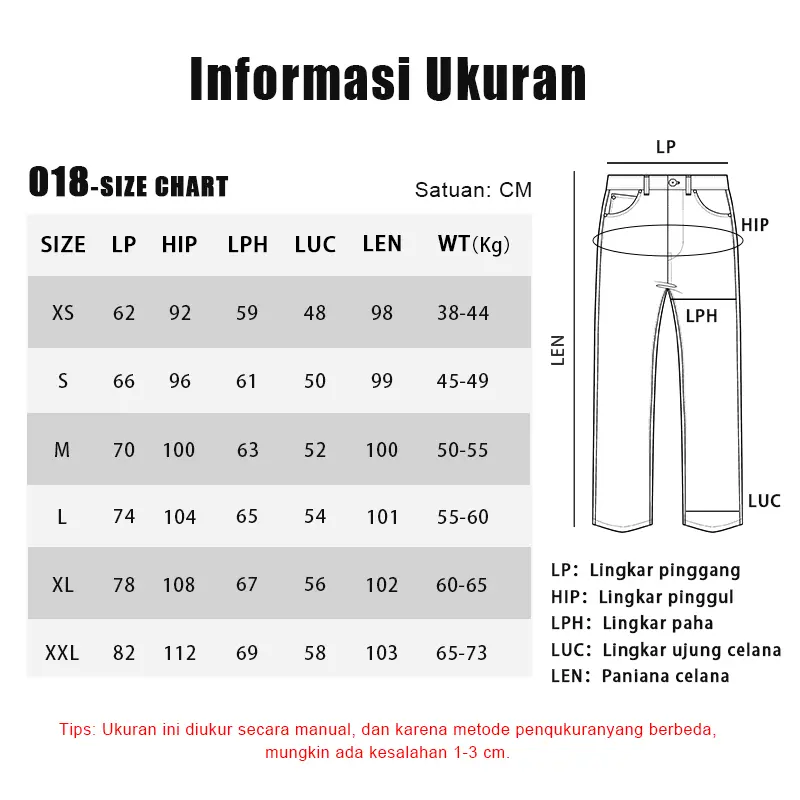1. Karena perbedaan proporsi tubuh setiap orang, deskripsi hanya sebagai referensi, Harap pilih sesuai dengan ukuran sebenarnya.