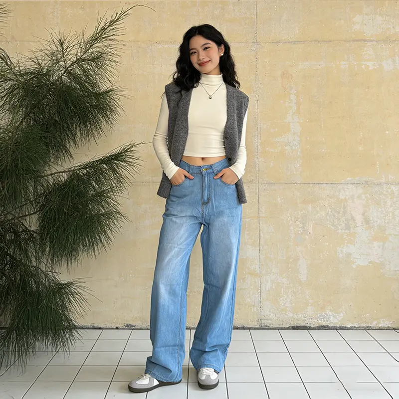 - Bahan: Jeans Denim Non-Stretch