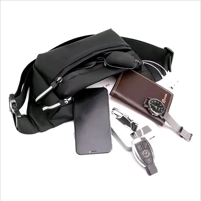 Tas Pinggang Pria Wanita Hitam Minimalis Fungsi Praktis Anti Air Tas Selempang untuk Harian