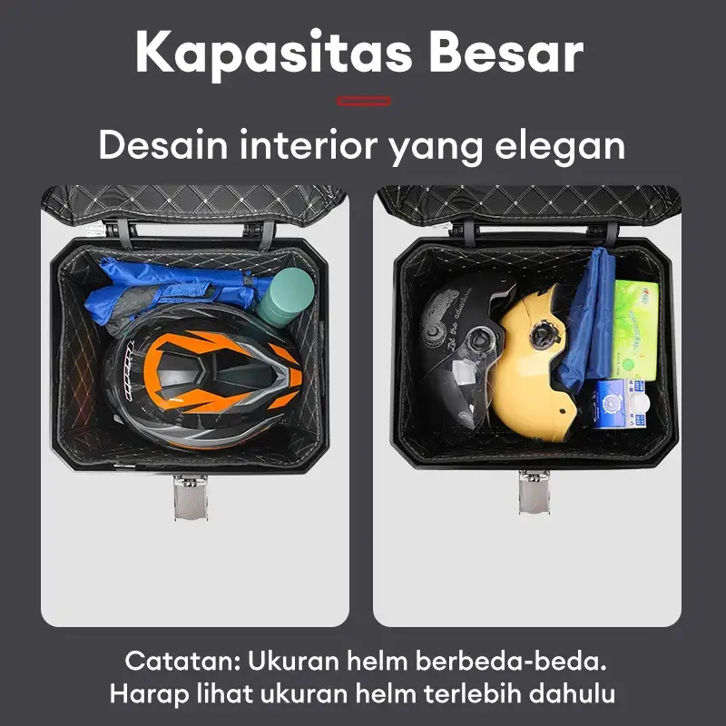 ✅ 48 L Kapasitas Besar: Kotak penyimpanan ini memiliki kapasitas besar 48 liter, ideal untuk menyimpan barang-barang Anda saat berkendara. Cocok untuk sepeda motor dan motor gunung. 🚲