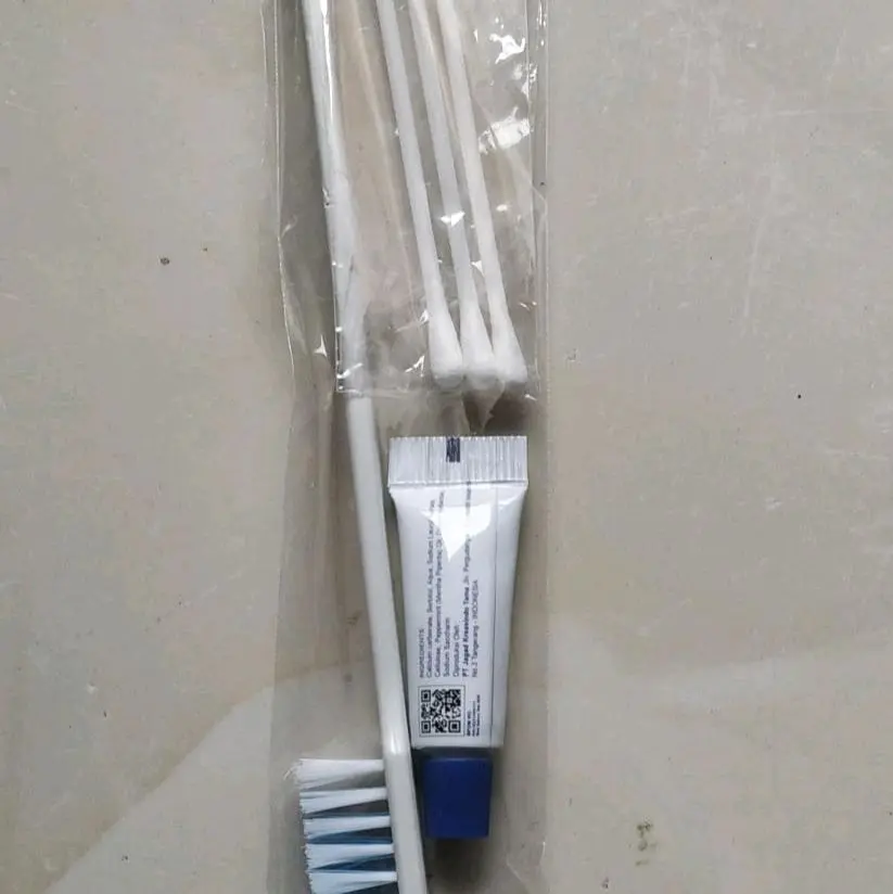 5. sikat gigi Hotel bulu halus dengan pasta gigi dan cotton bud isi 3