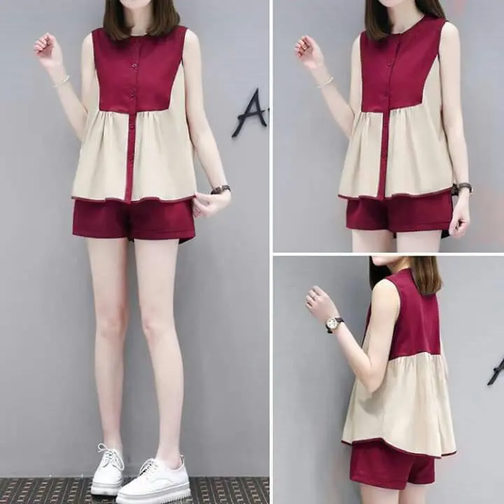 Set terdiri dari atasan tanpa lengan + celana pendek