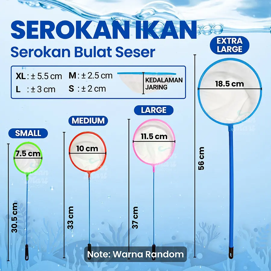 Terbuat dari Bahan high grade yang tahan lama dan kuat mengatasi segala kondisi apapun, Aman dan ramah lingkungan bagi ikan kesayangan anda. Disertai dengan peyangga serokan berbentuk bulat yang kuat, serokan ikan berkualitas tinggi ini memiliki jaring lembut dengan design mengambang sehinggi tidak melukai ikan.