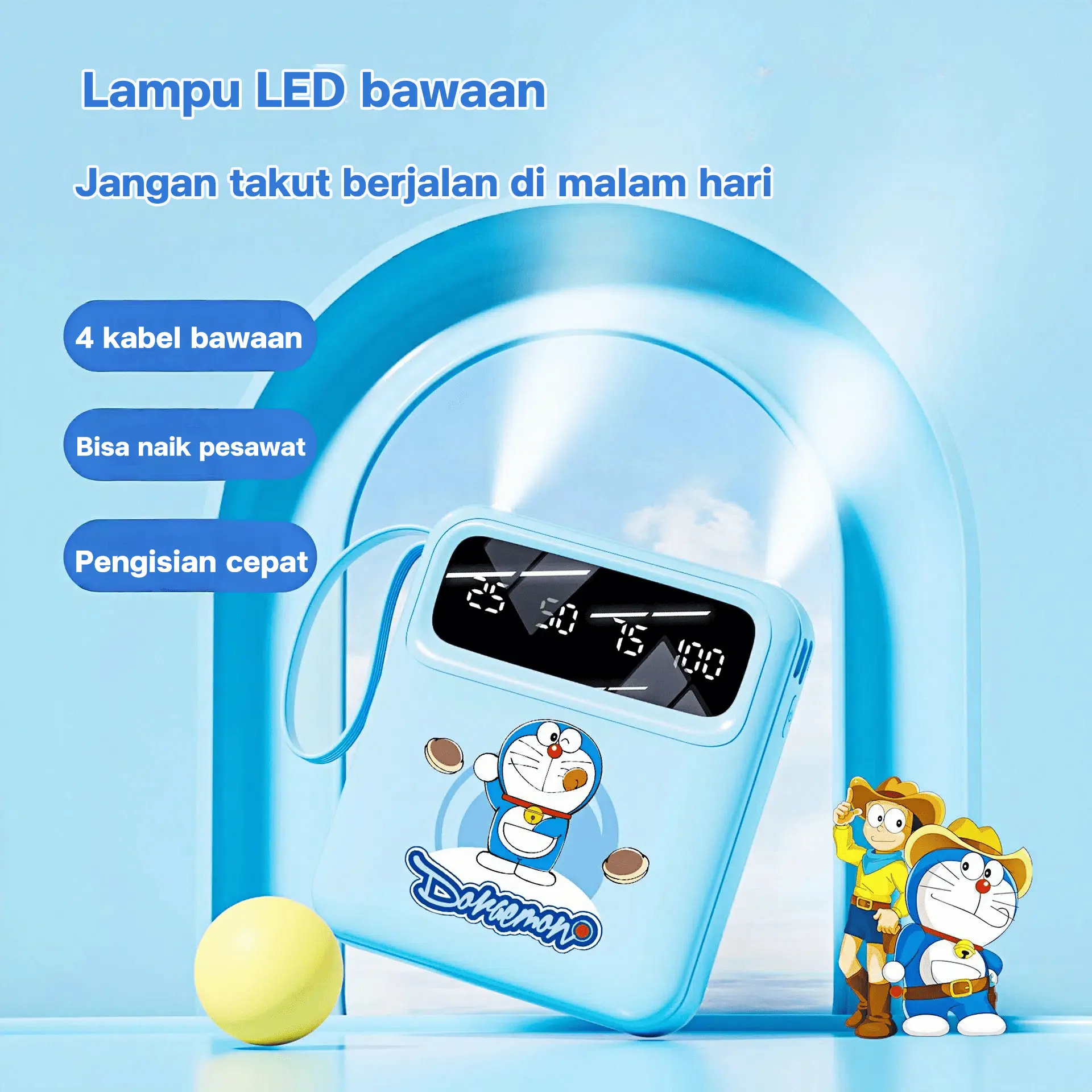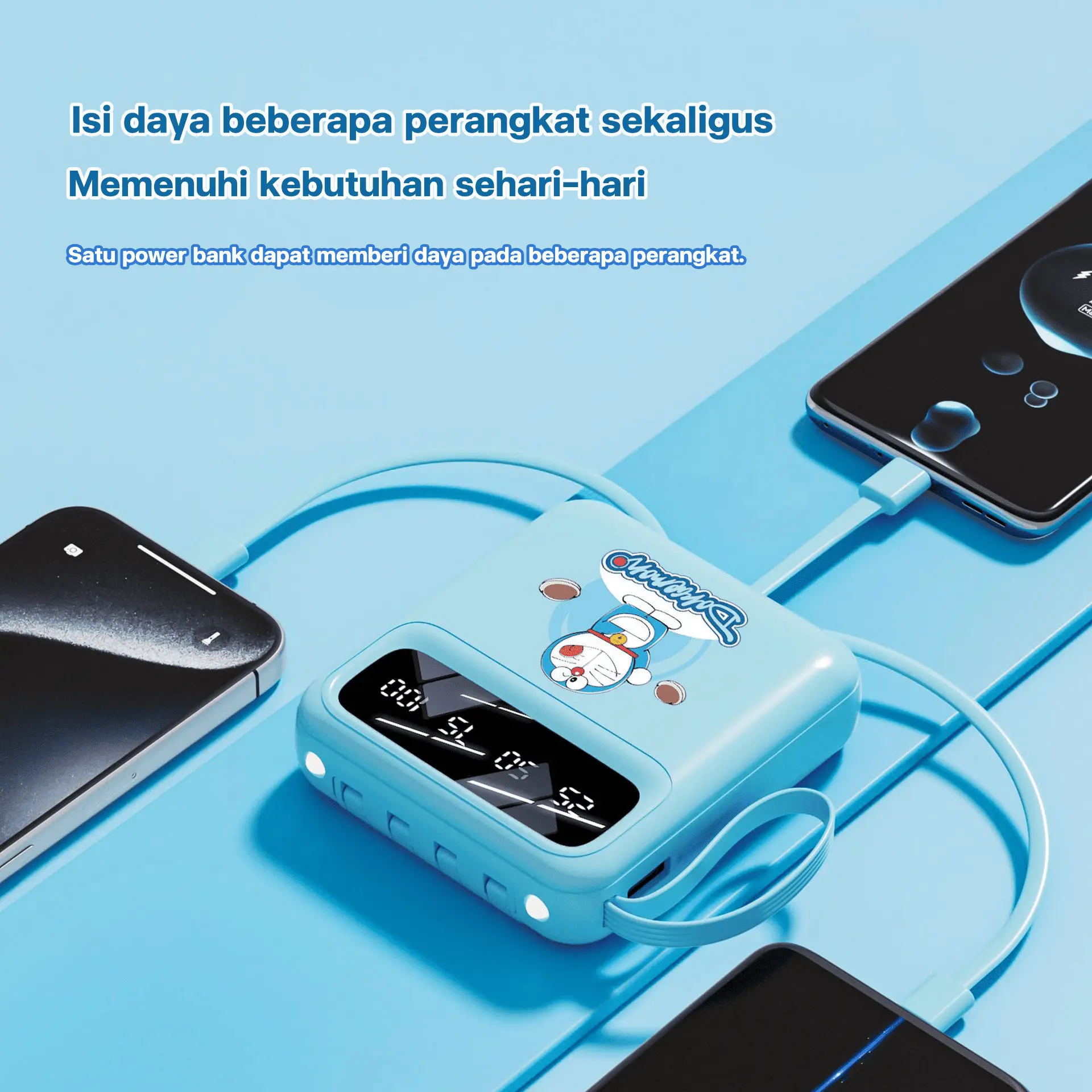 Powerbank Doraemon ini adalah pilihan tepat untuk pengguna yang membutuhkan kapasitas besar dan portabilitas. Dengan 4 kabel bawaan, Anda siap untuk pengisian daya kapan saja.