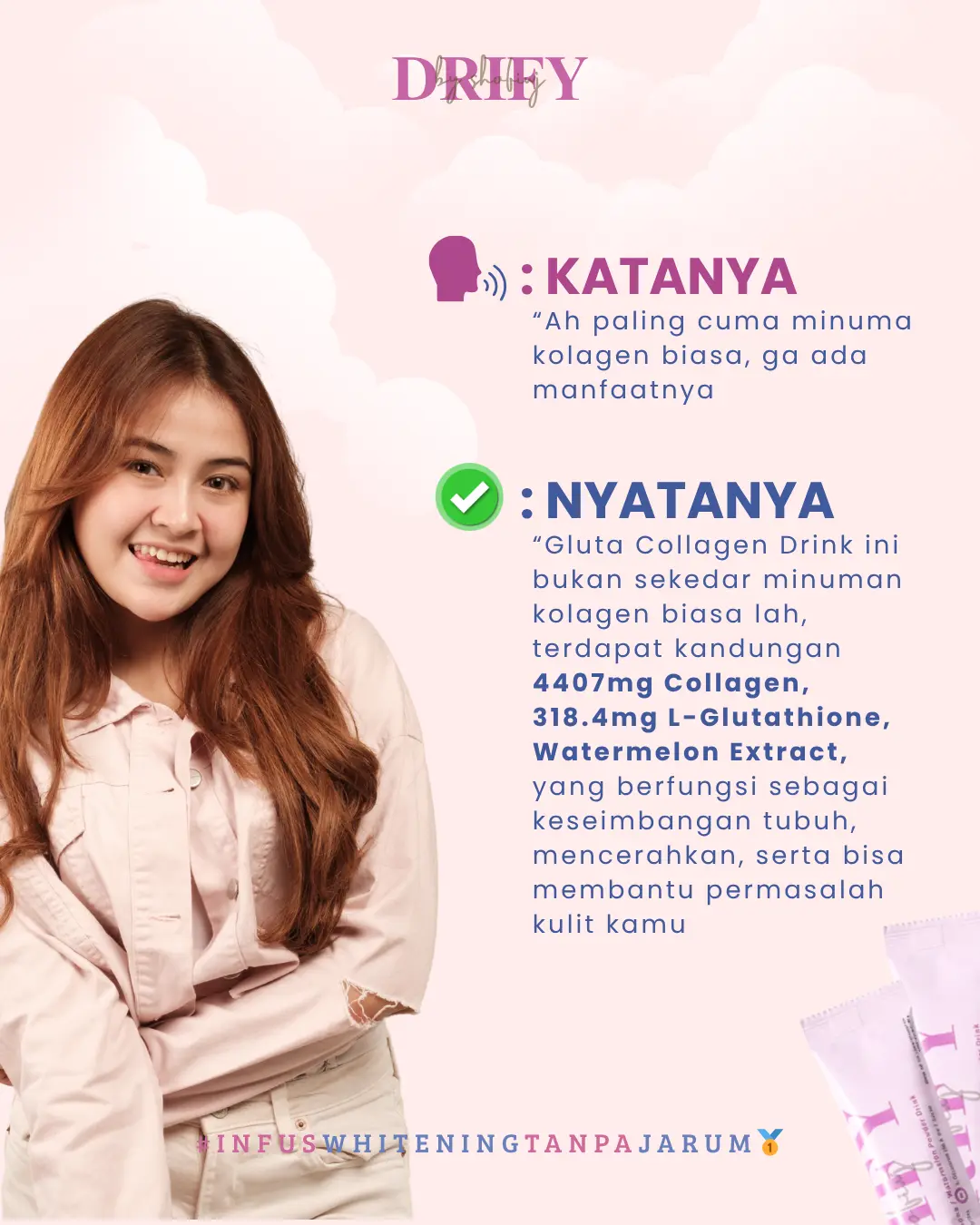 RAHASIA GLOW UP SETARA INFUS WHITENING DENGAN DRIFY GLUTA COLLAGEN DRINK!