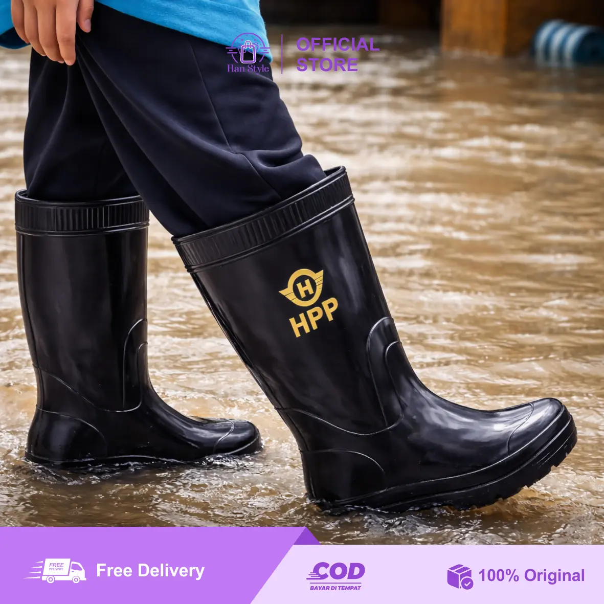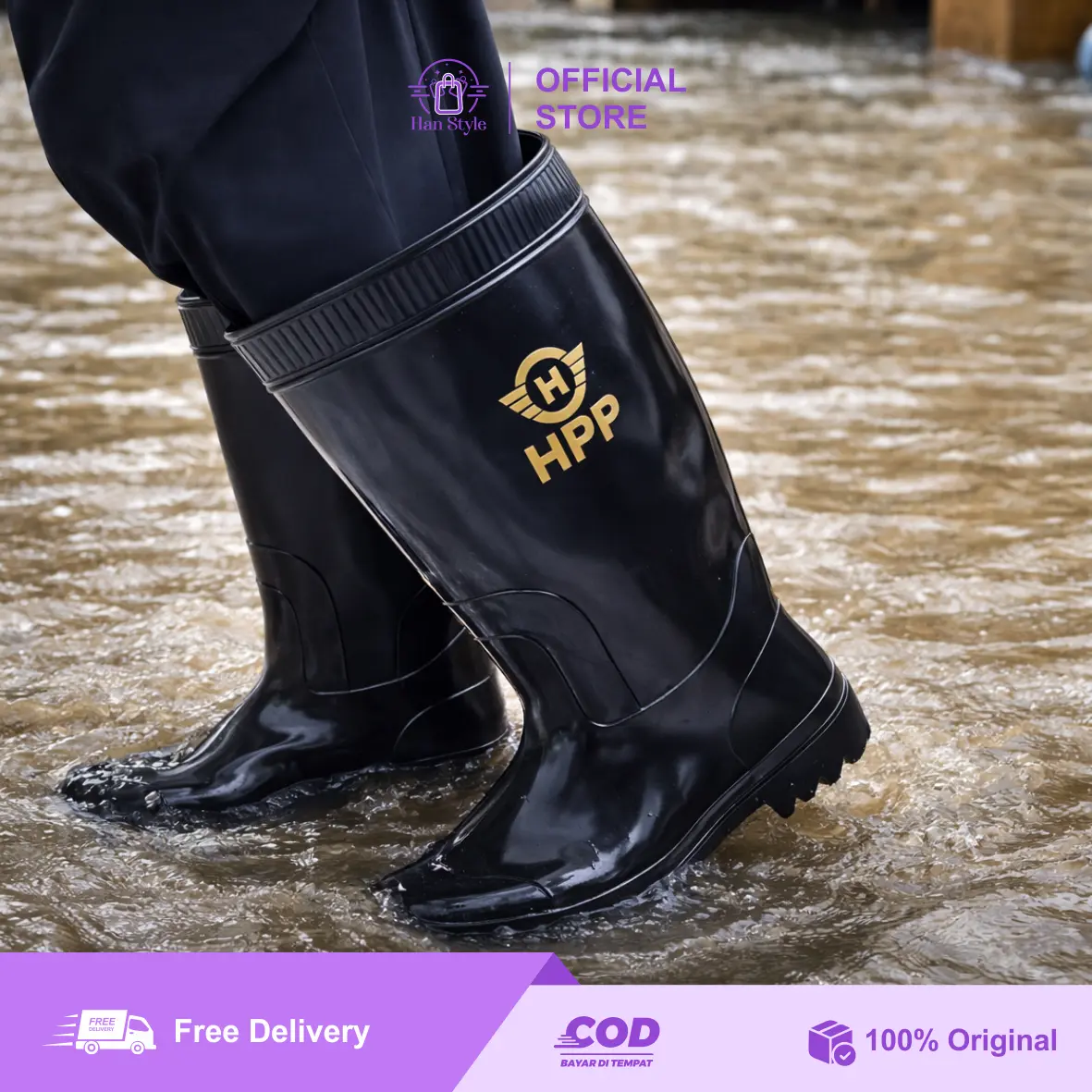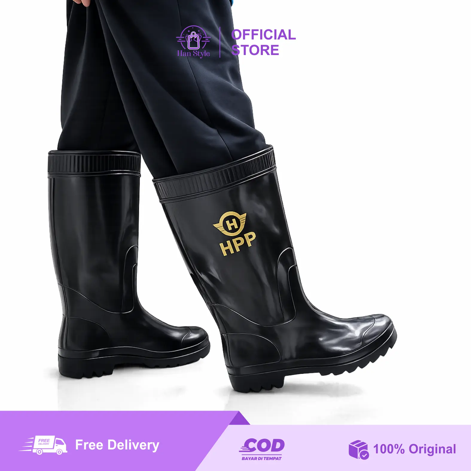 Sepatu boots ukuran sedang dari HPP hadir dengan desain modern yang tingginya di bawah lutut, cocok untuk aktivitas yang membutuhkan perlindungan ekstra, tanpa mengorbankan kenyamanan dan fleksibilitas.