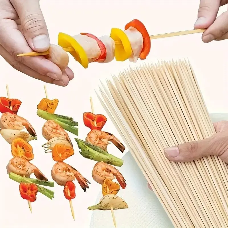 Tusuk sate bambu ini dapat menahan beban hingga 1,5 kg makanan dengan aman, menjadikannya sempurna untuk memanggang, membakar, dan membuat kebab.