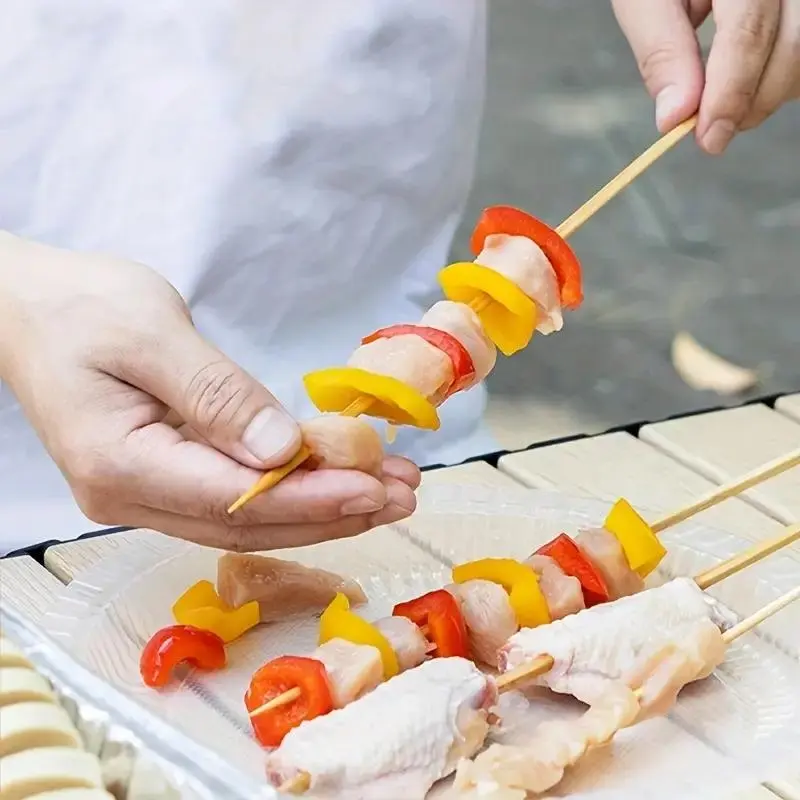 Setiap tusuk sate dipoles halus dengan ujung runcing agar mudah menusuk makanan, sementara permukaannya yang halus memastikan penanganan yang aman dan bebas serpihan.