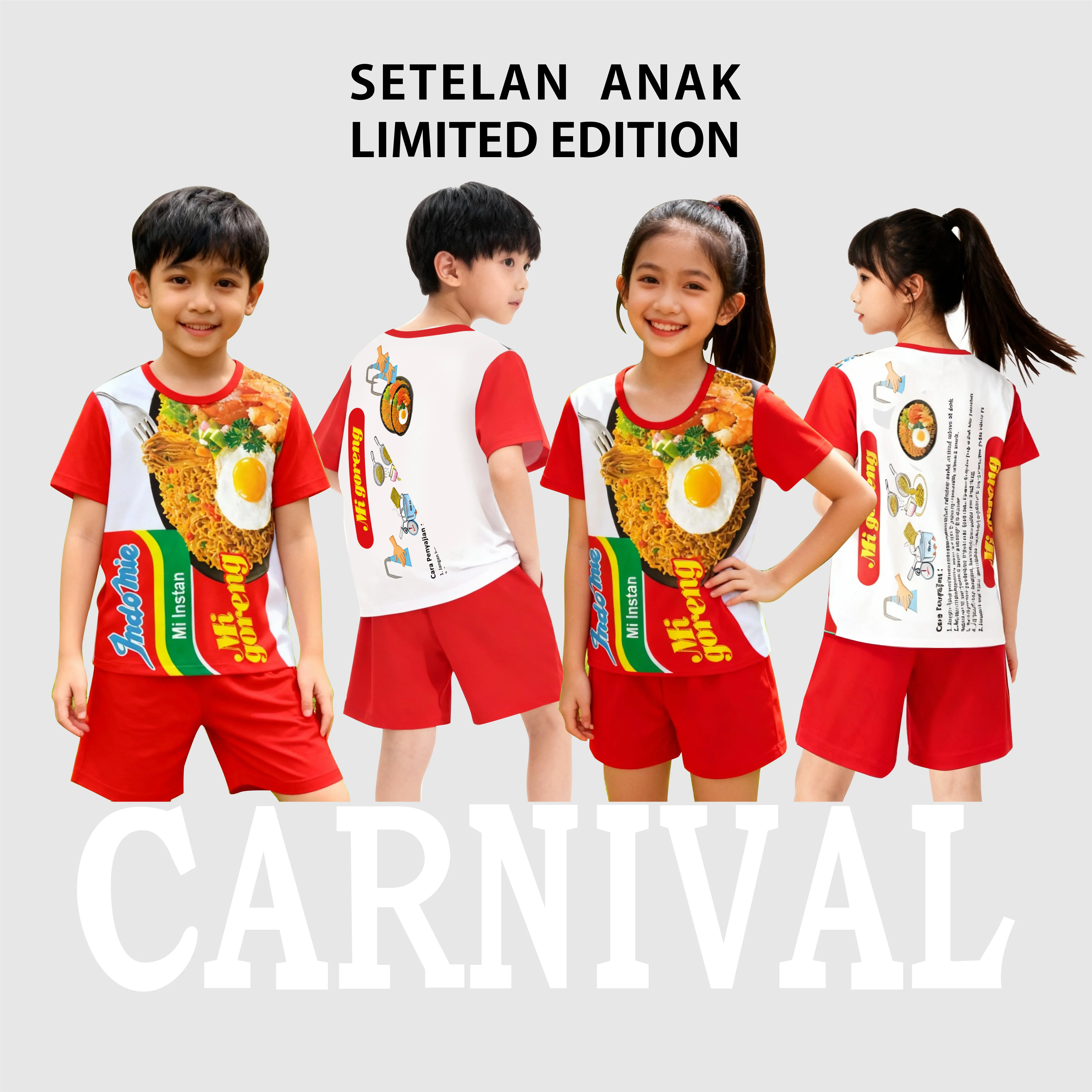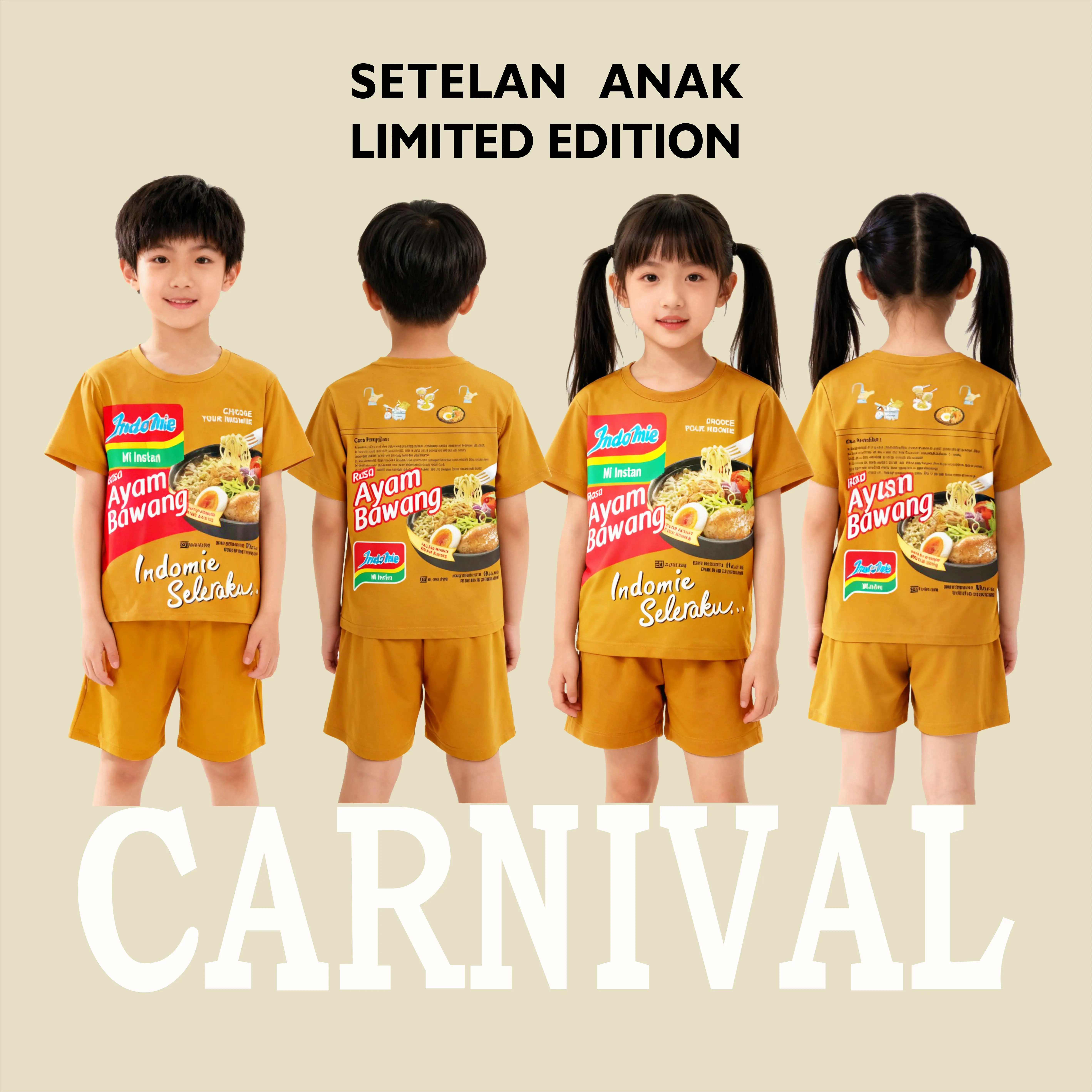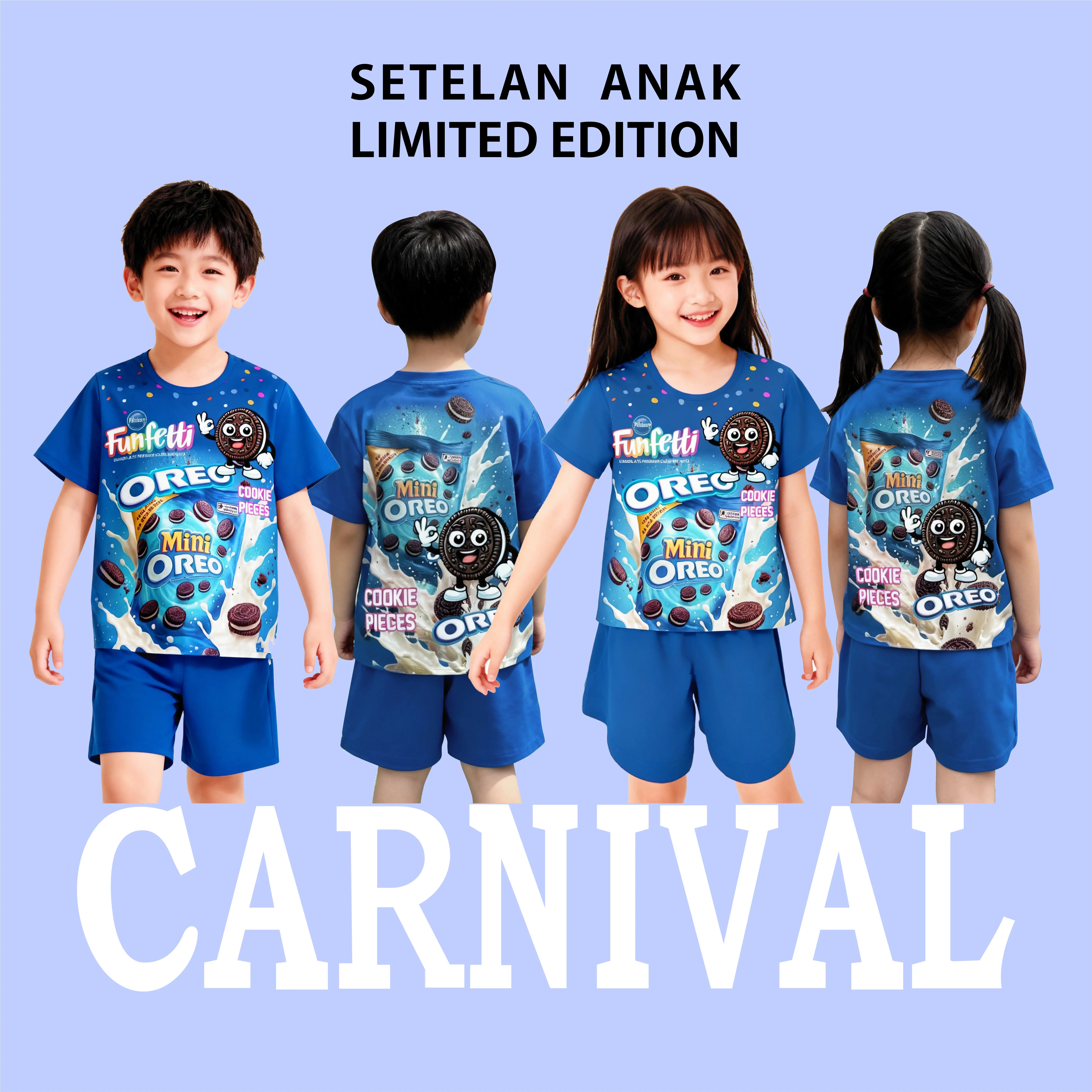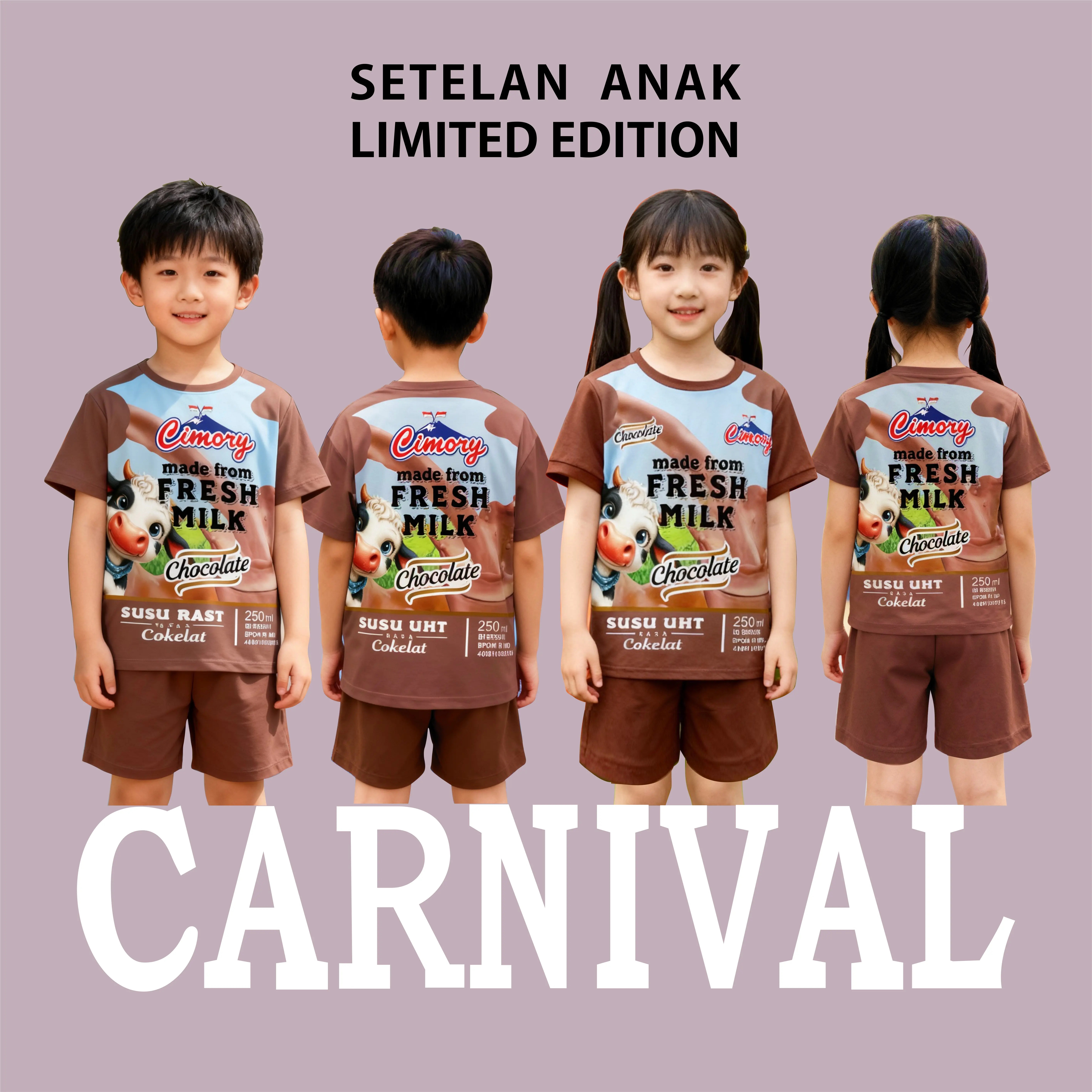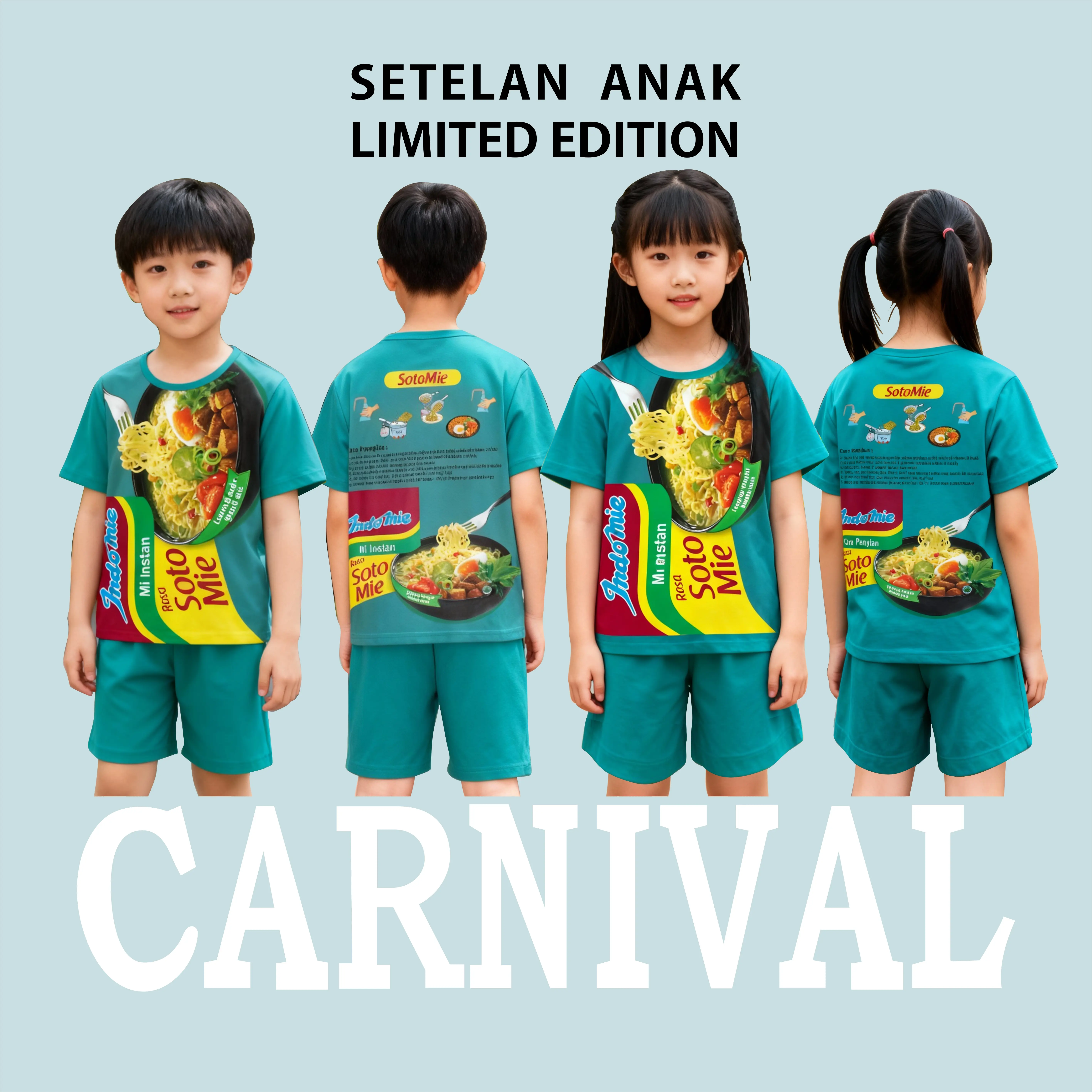 Carnival Setelan Anak-Anak Laki-Laki dan Perempuan Unisex Usia 1-8 Tahun Motif Viral Indomi Chitato Ultramilk Sotomie cimory oreo
