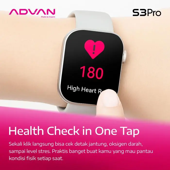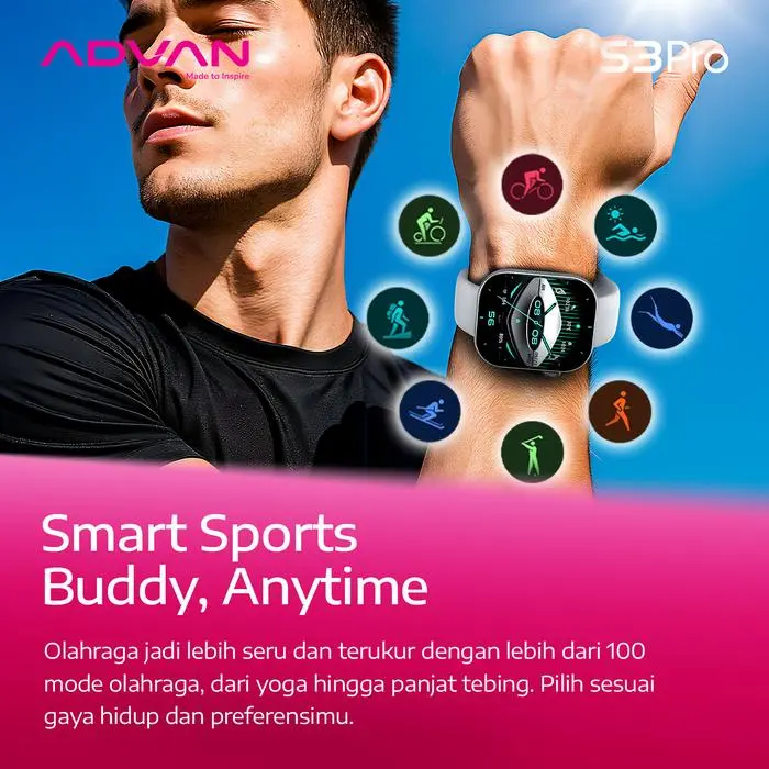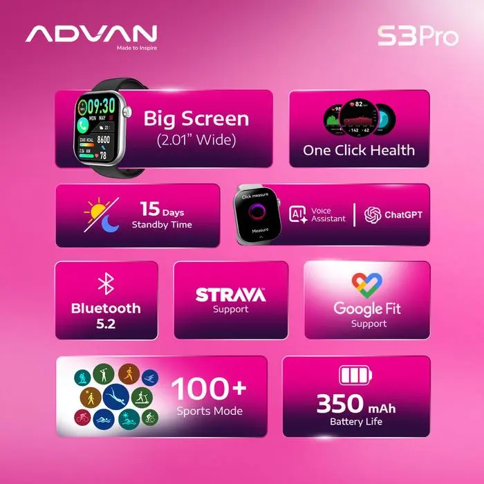 ADVAN Smartwatch S3 Pro adalah perangkat yang dibuat untuk menemani aktivitas sehari-hari pengguna dengan desain yang tangguh dan cocok untuk kondisi ekstrem dan penggunaan aktifitas outdoor.