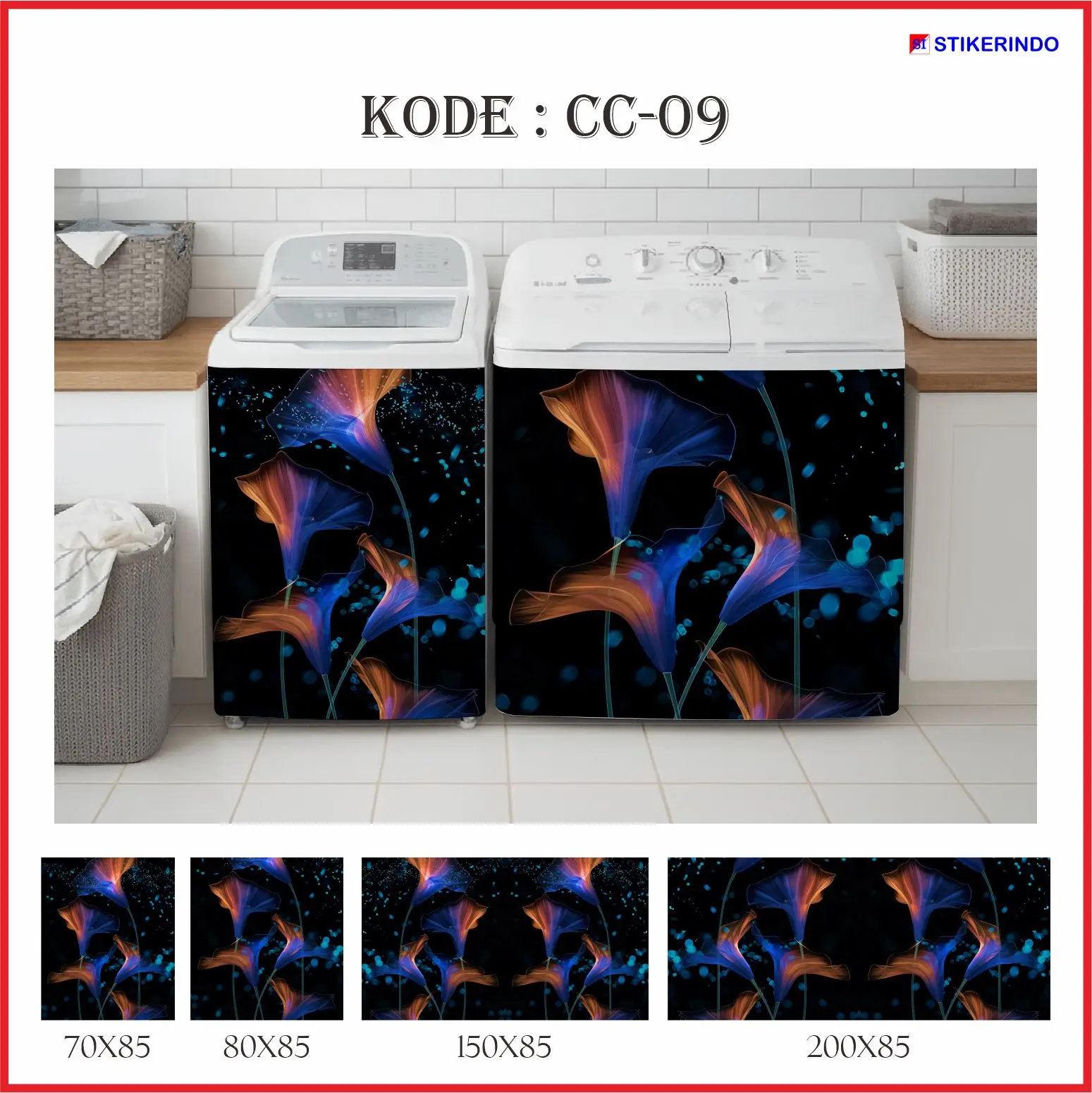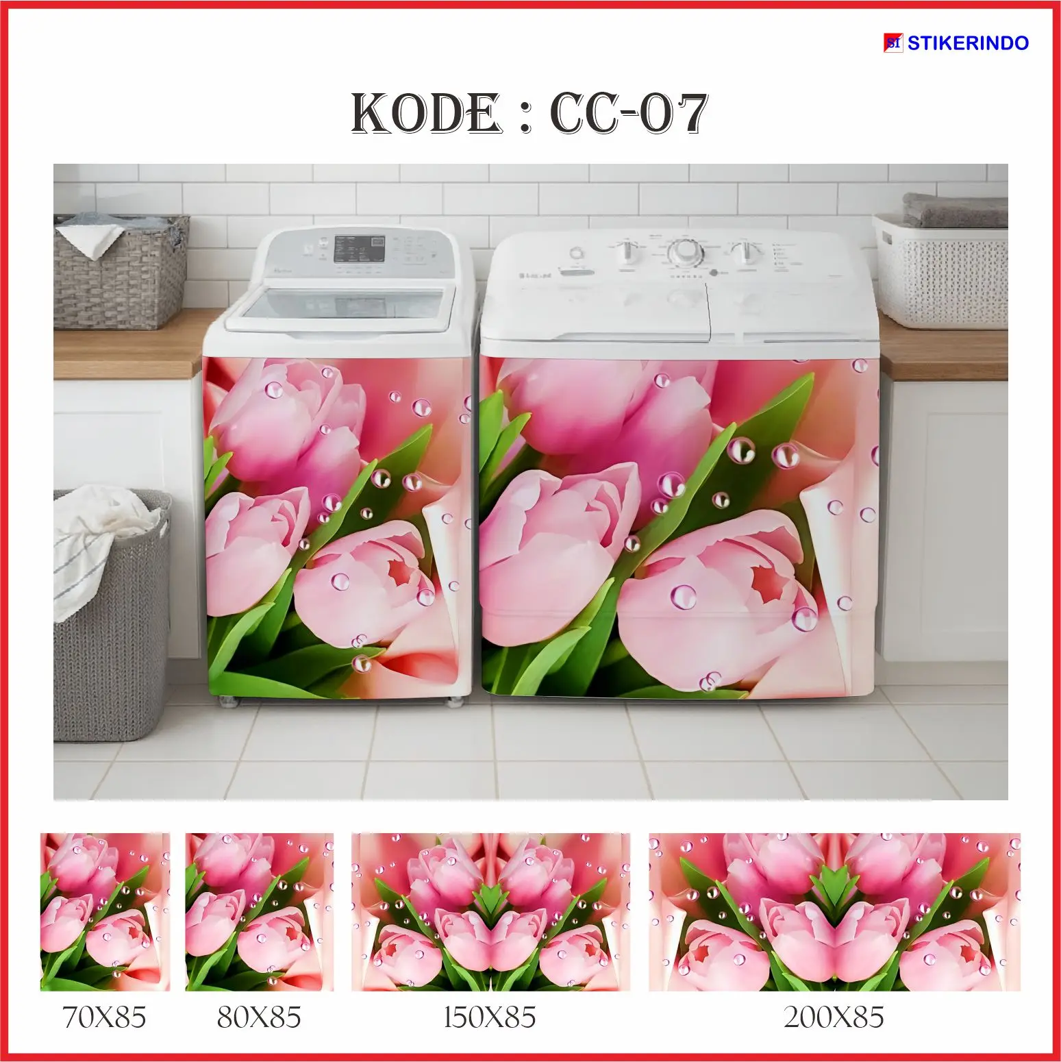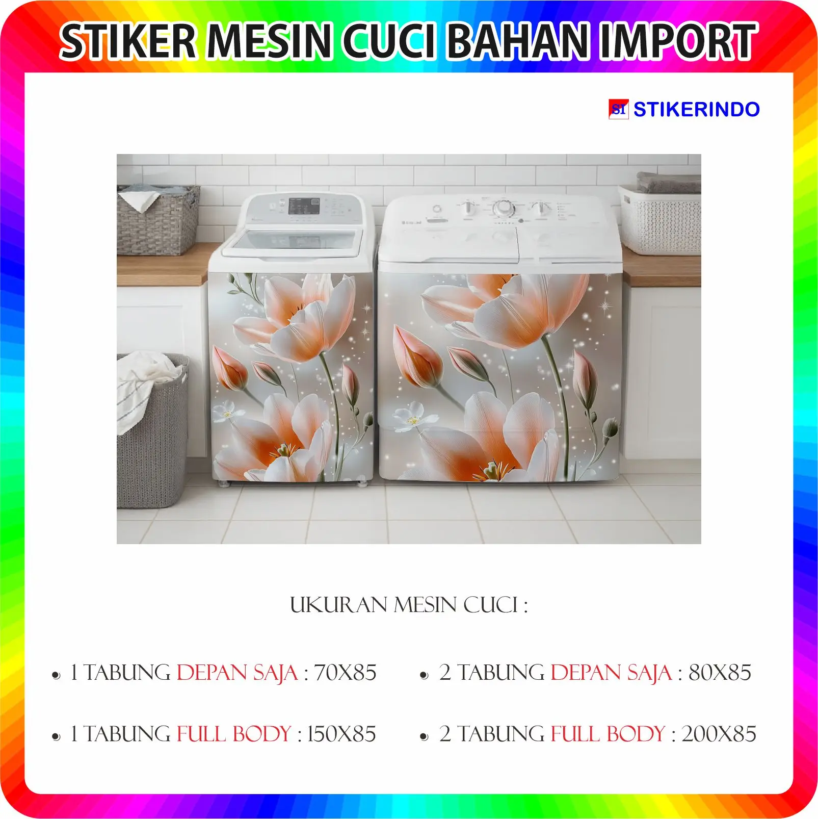 Percantik tampilan mesin cuci di rumah dengan stiker "Motif Bunga" dari Stikerindo!
