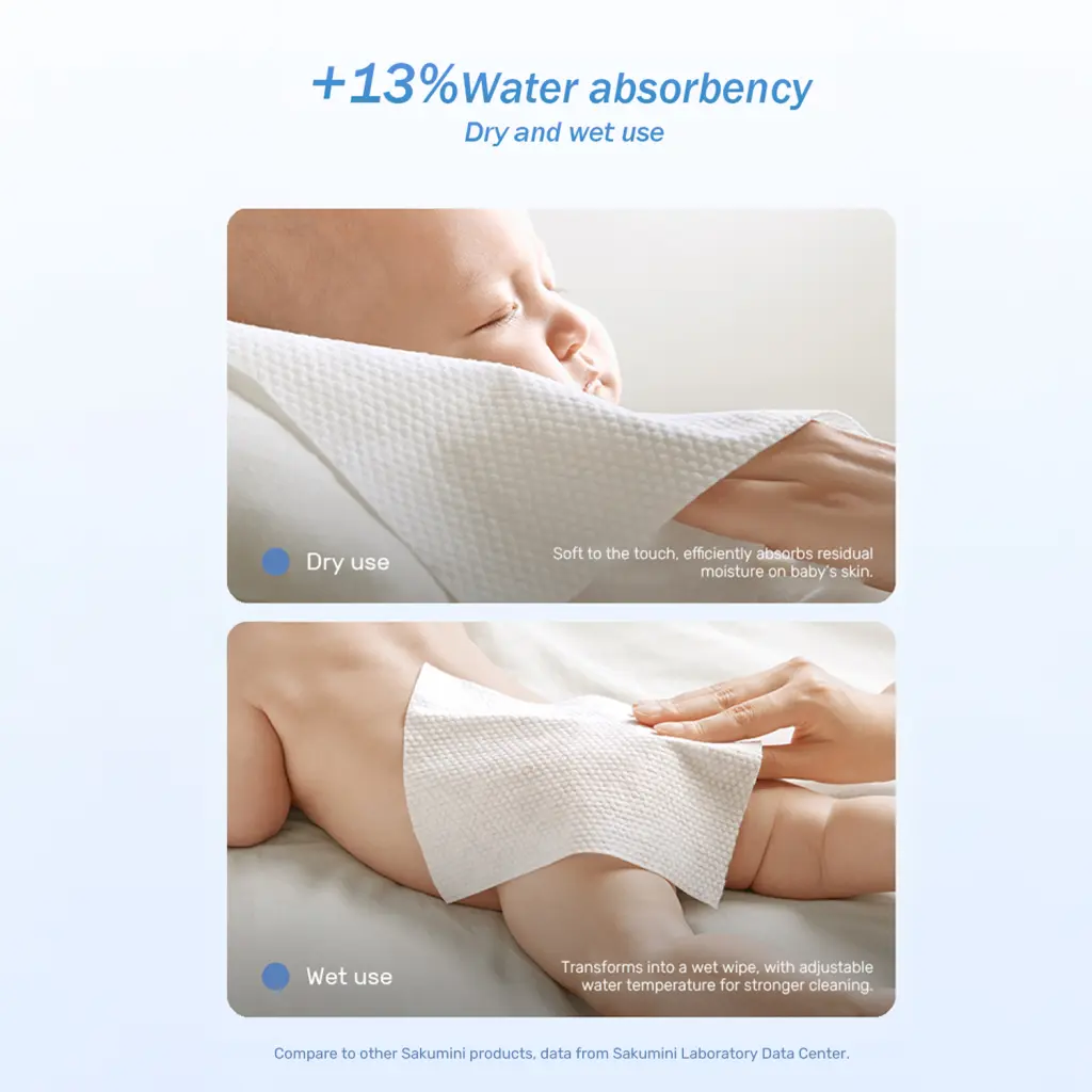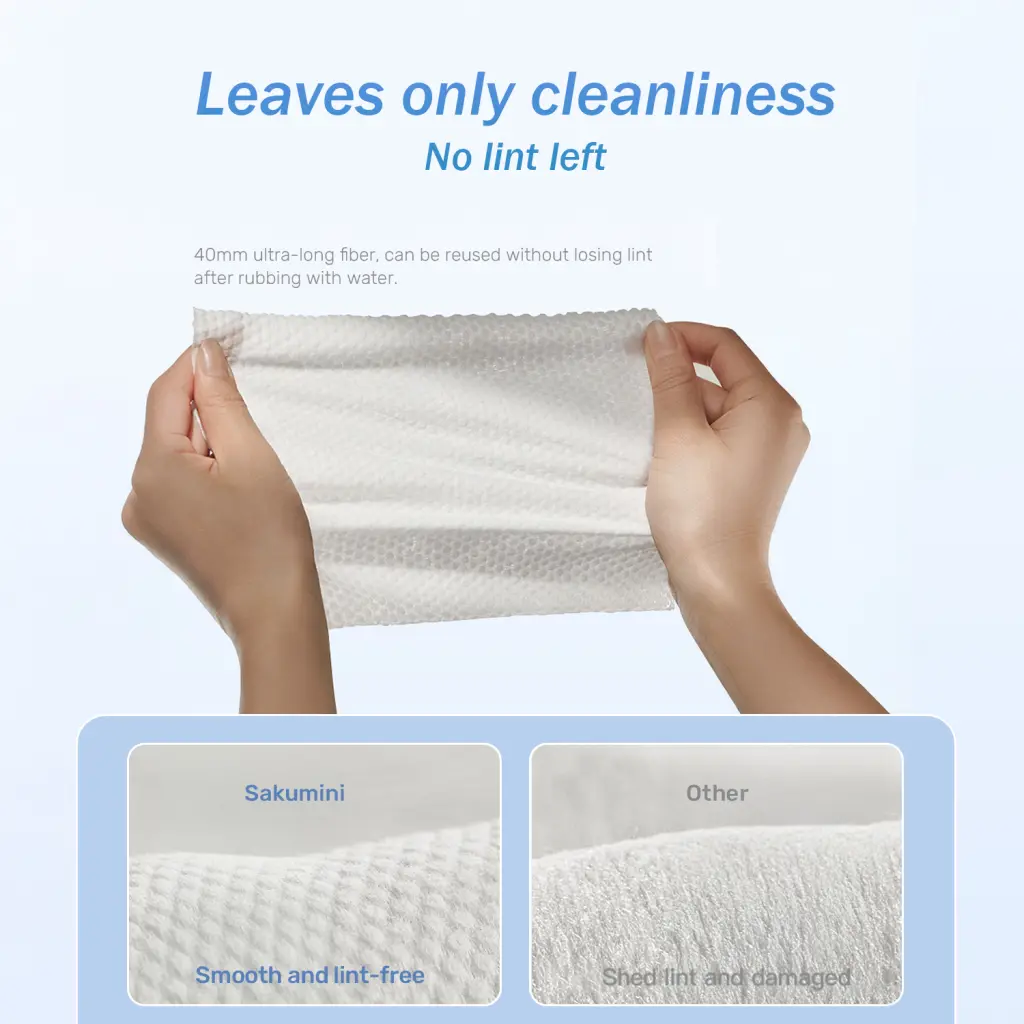 Tisu Kering Sakumini adalah tisu yang memiliki tingkat ketebalan 50% lebih tebal dibandingkan dengan tisu biasa. Terbuat dari bahan kain non-woven spunlace yang tebal dan lembut.