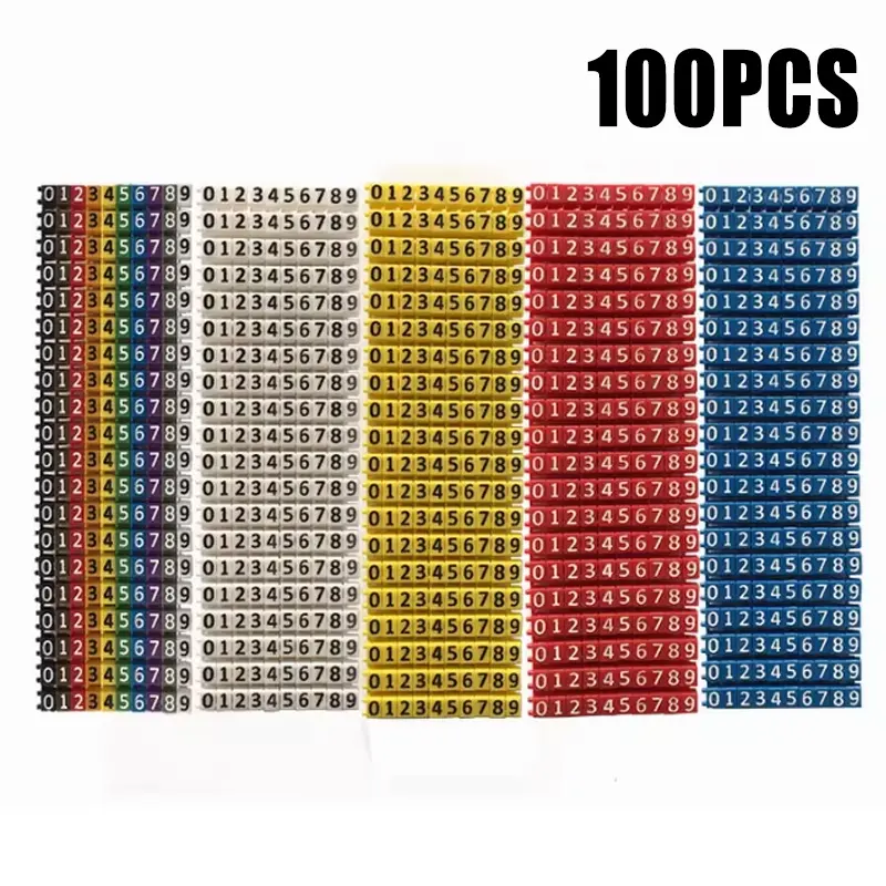 Isi 100 Cable Markers Colourful C-Type Marker Number Tag Label Sticker Label Kabel Jaringan Listrik 2.5mm