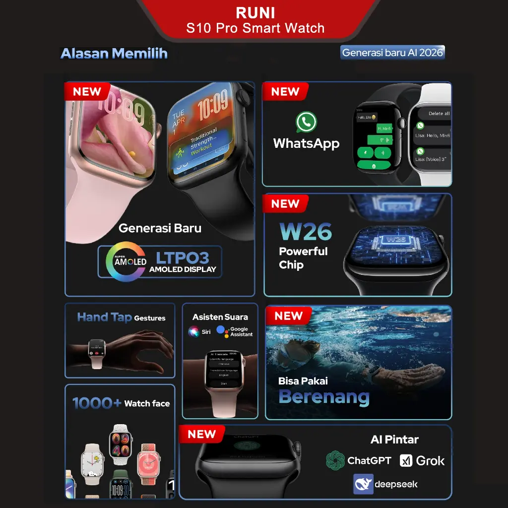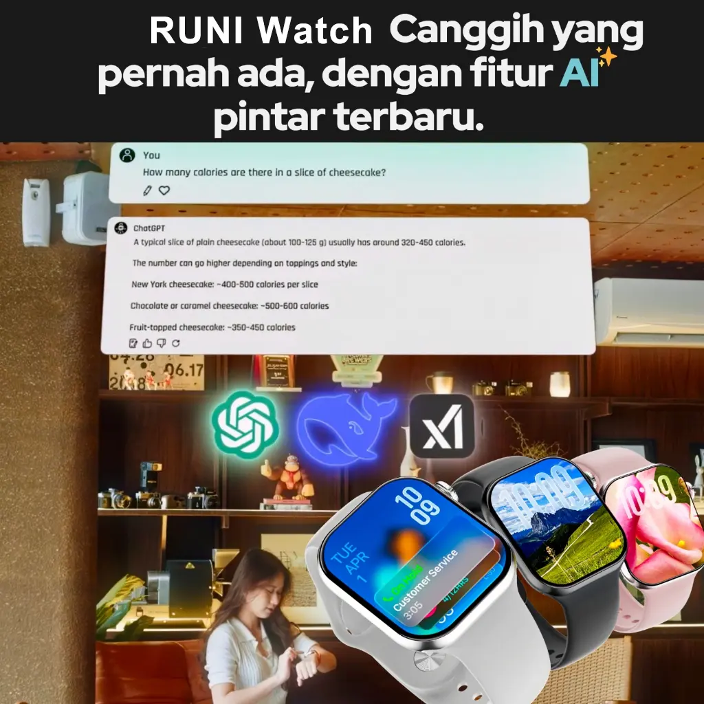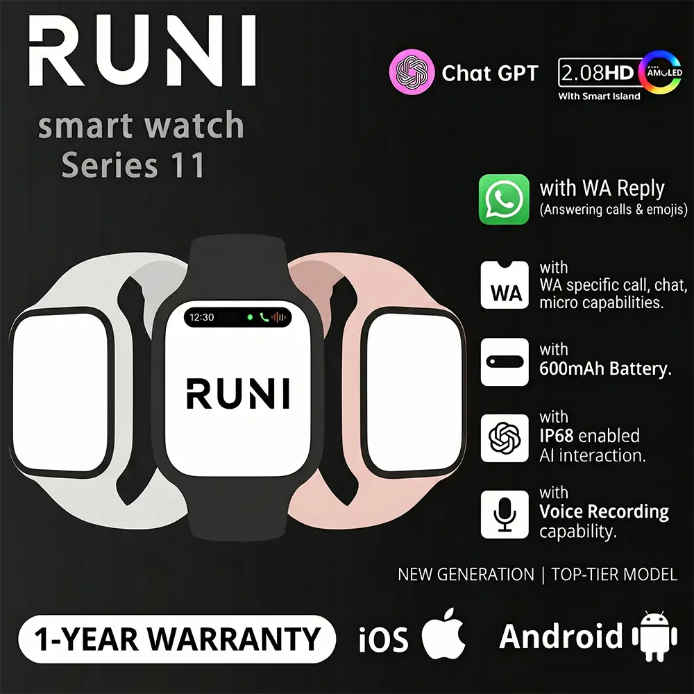 Garansi 3 bulan. Wajib video unboxing dan charge maksimal 5V 5W 1A.RUNI WATCH S11 Pro AI Smartwatch