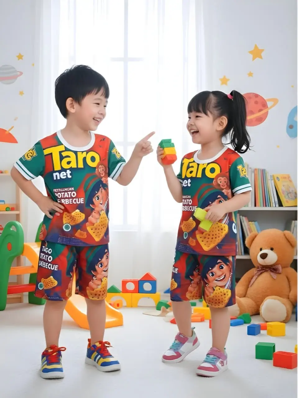 Setelan ini memberikan tampilan yang menarik dan nyaman untuk anak Anda. Dengan desain full printing, setelan ini akan membuat anak Anda tampil istimewa. 🎨