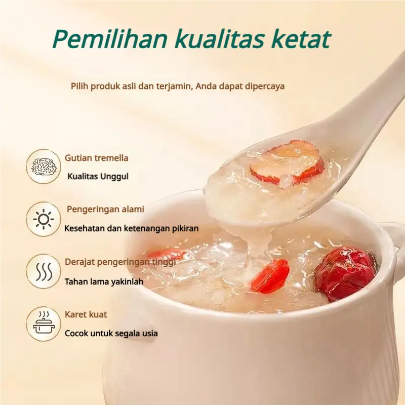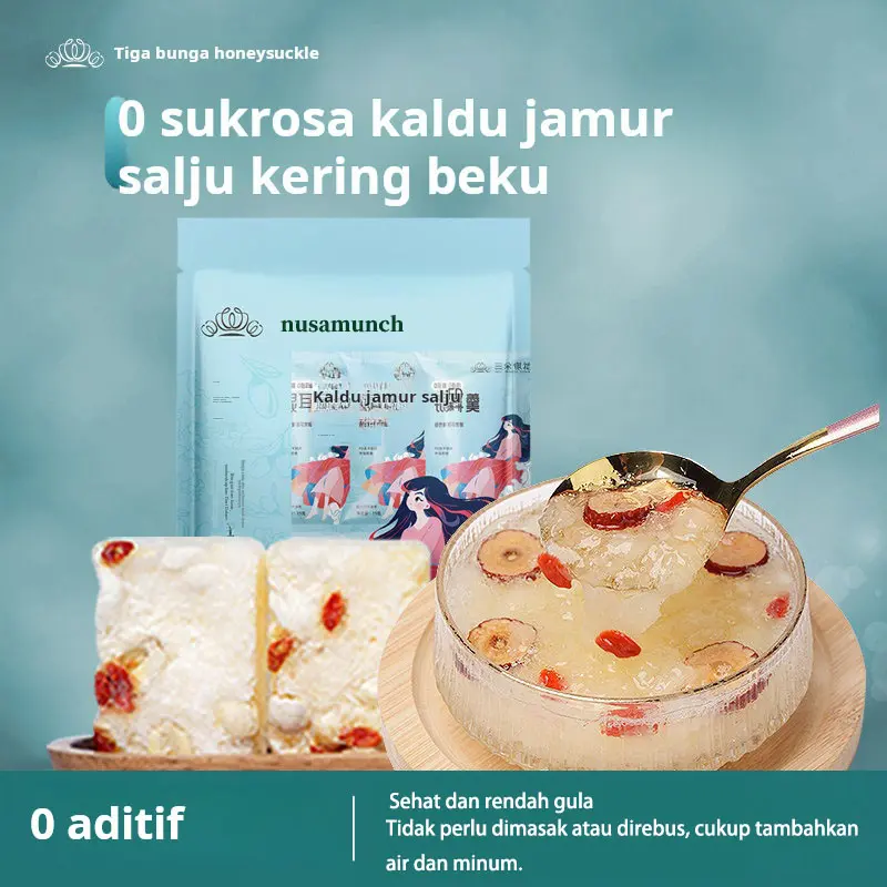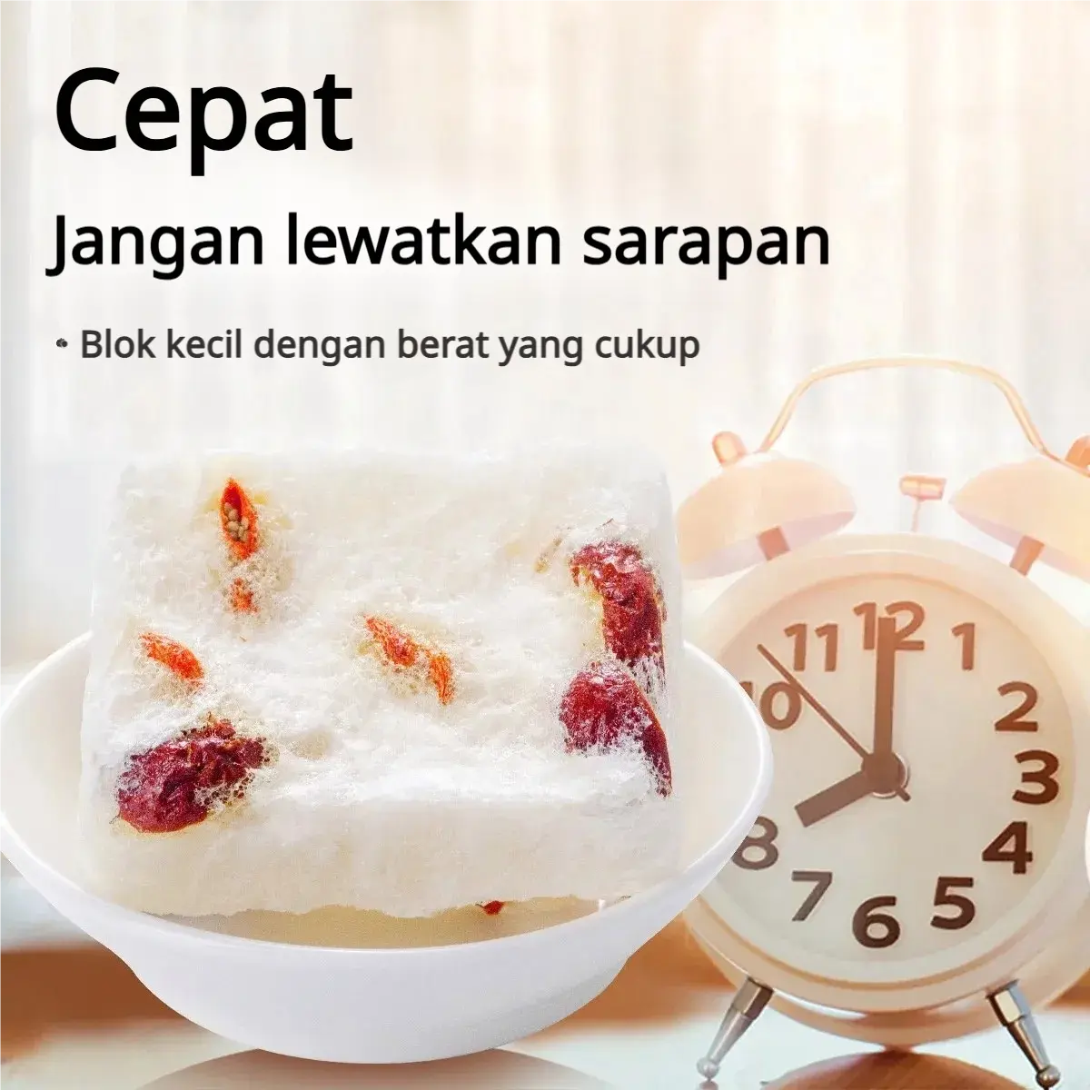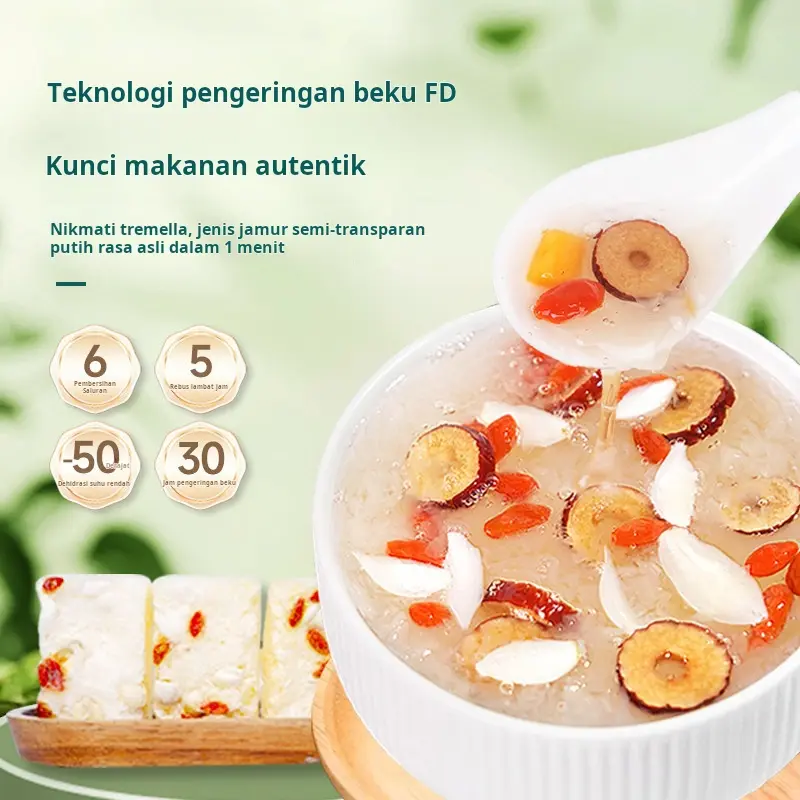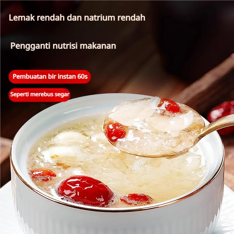 Sarapan instan, tidak perlu dimasak, sup kurma merah, beri goji, umbi bunga lili, dikemas individual, bisa diminum kapan saja, kaya kolagen, perawatan kulit, mendukung pencernaan, sehat & rendah gula.
