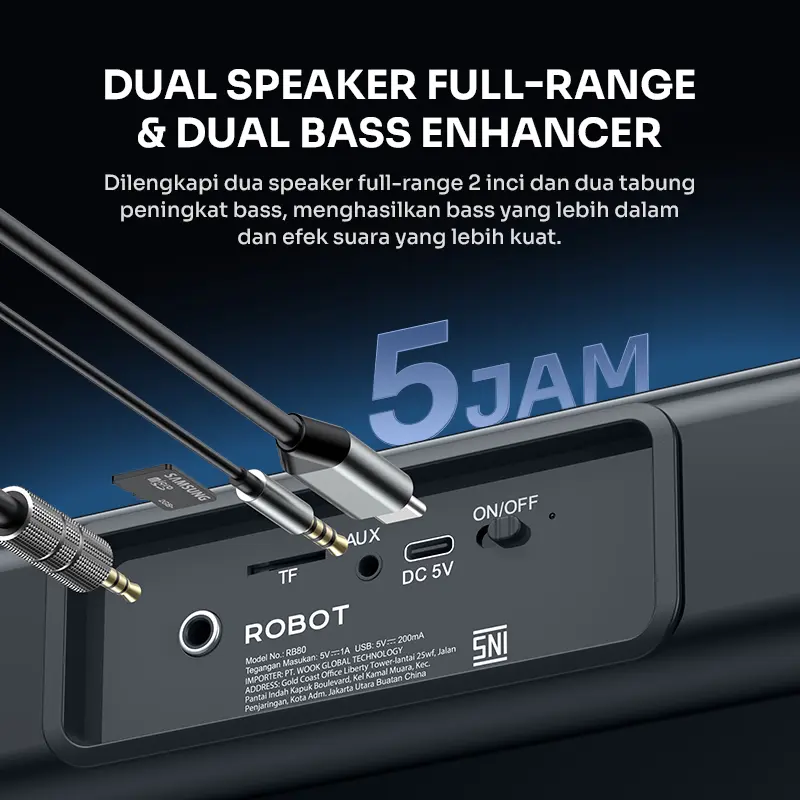 ![[EKSLUSIF SPECIAL PRICE] ROBOT RB80 Soundbar TV Bluetooth 6.0 10W Dual Speaker Full-Range & Dual Bass Konektivitas Ganda Garansi 1 Tahun BISA COD [EKSLUSIF SPECIAL PRICE] ROBOT RB80 Soundbar TV Bluetooth 6.0 10W Dual Speaker Full-Range & Dual Bass Konektivitas Ganda Garansi 1 Tahun BISA COD](https://p16-oec-sg.ibyteimg.com/tos-alisg-i-aphluv4xwc-sg/03c624bff0a345e5bbb6f1176170be99~tplv-aphluv4xwc-origin-jpeg.jpeg?dr=15568&t=555f072d&ps=933b5bde&shp=a3510d86&shcp=6ce186a1&idc=my&from=2739998086)