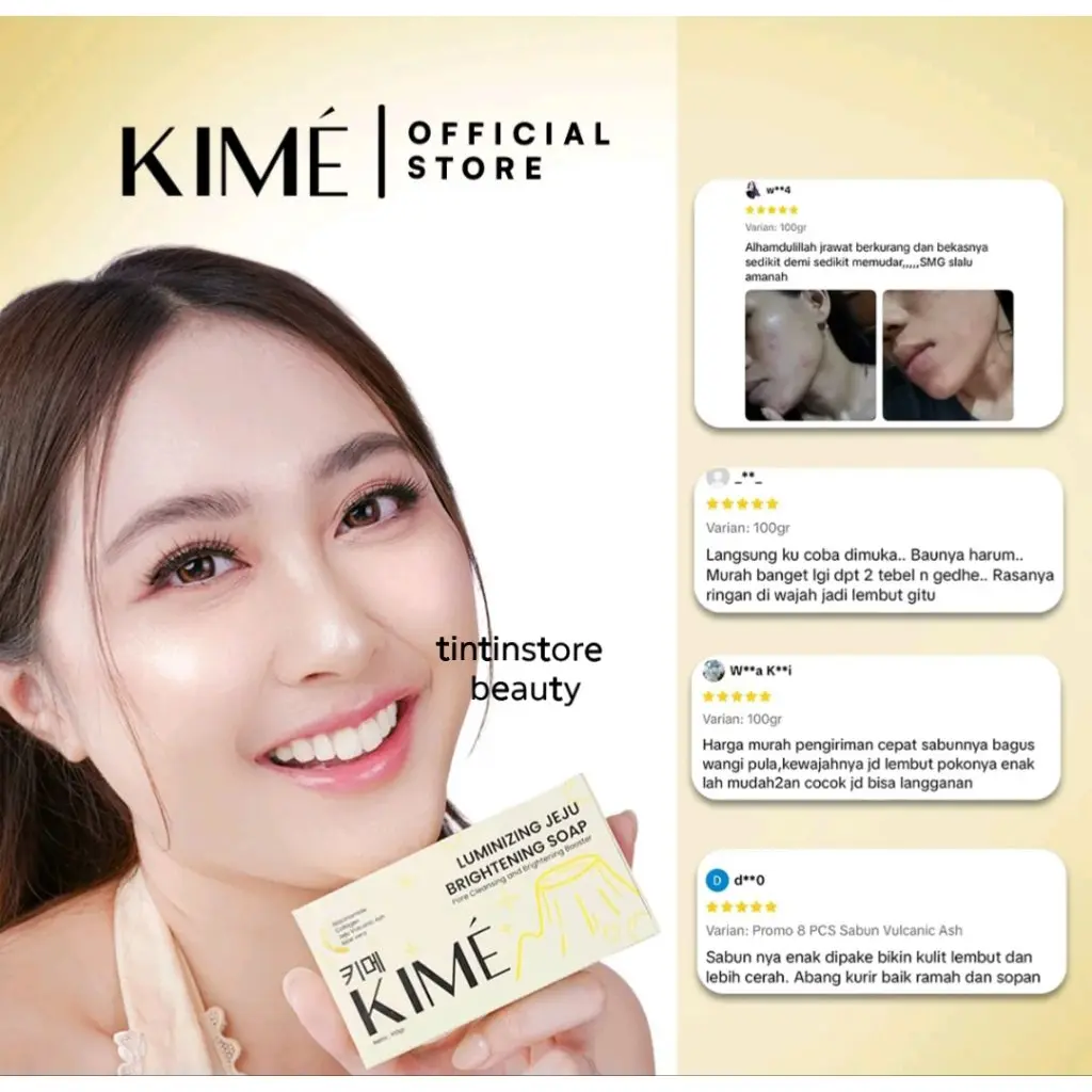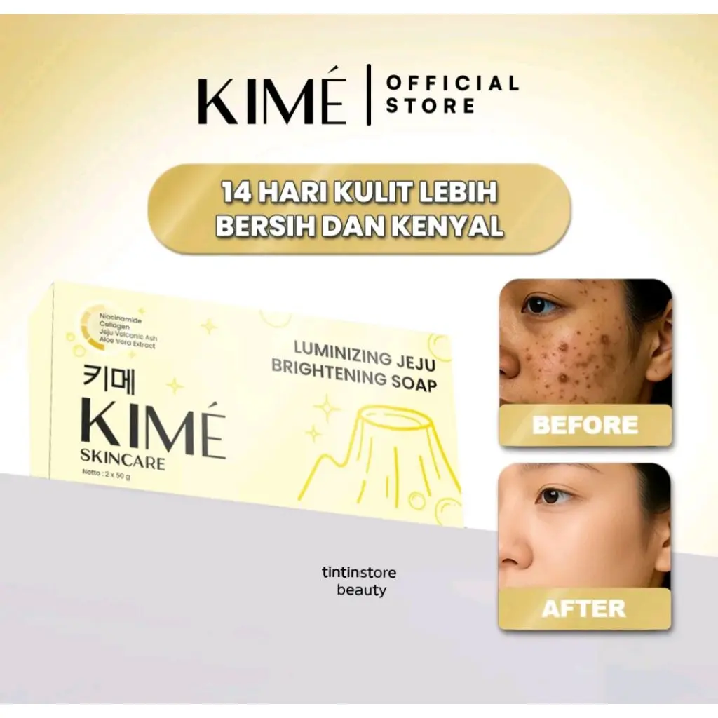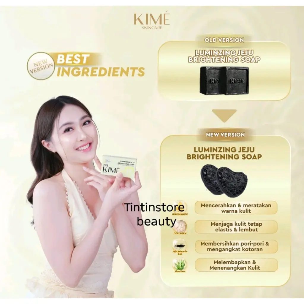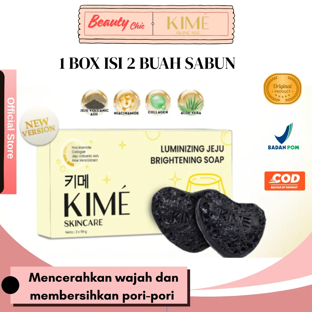 KIME Luminizing Jeju Brightening Soap adalah sabun pencerah berkualitas yang diformulasikan dengan perpaduan bahan aktif seperti Jeju Volcanic Ash, Charcoal Powder, dan Niacinamide. Bekerja efektif untuk membantu membersihkan pori-pori secara mendalam sekaligus membantu mencerahkan dan meratakan warna kulit.