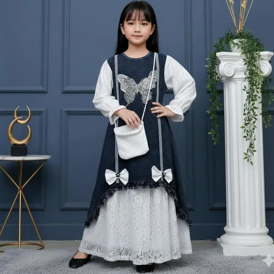 Gamis Butterfly Anak Perempuan Muslimah adalah pilihan tepat untuk anak perempuan Anda. Tampil cantik dan modis dengan gamis ini.