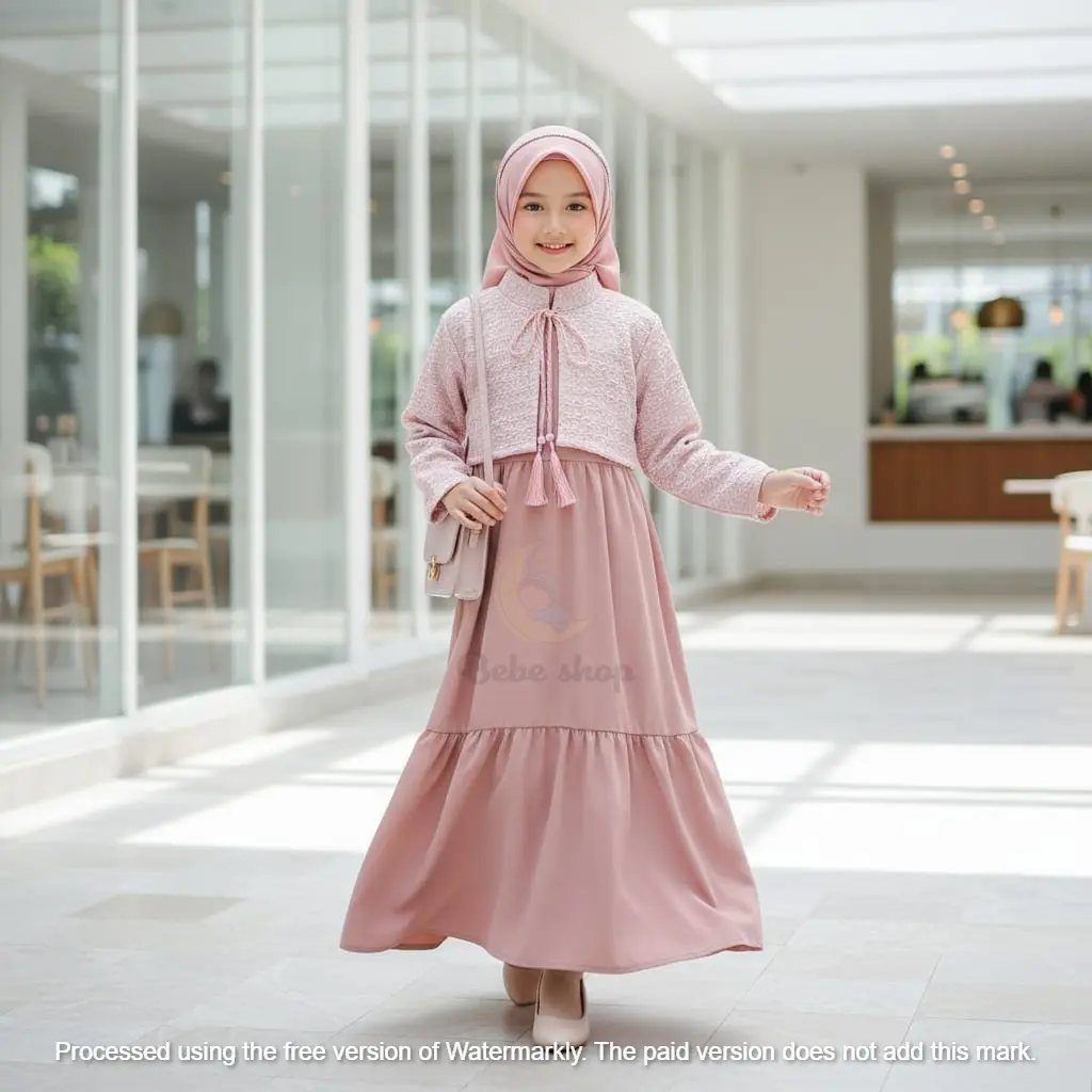 Gamis Anak Perempuan Dress Anak Perempuan Kekinian Model Rompi Stylish Bahan Jaguar Puff Mix Marbella Tersedia Usia 1 Sampai 12 Tahun Warna Kekinian Yang lembut Dan Manis