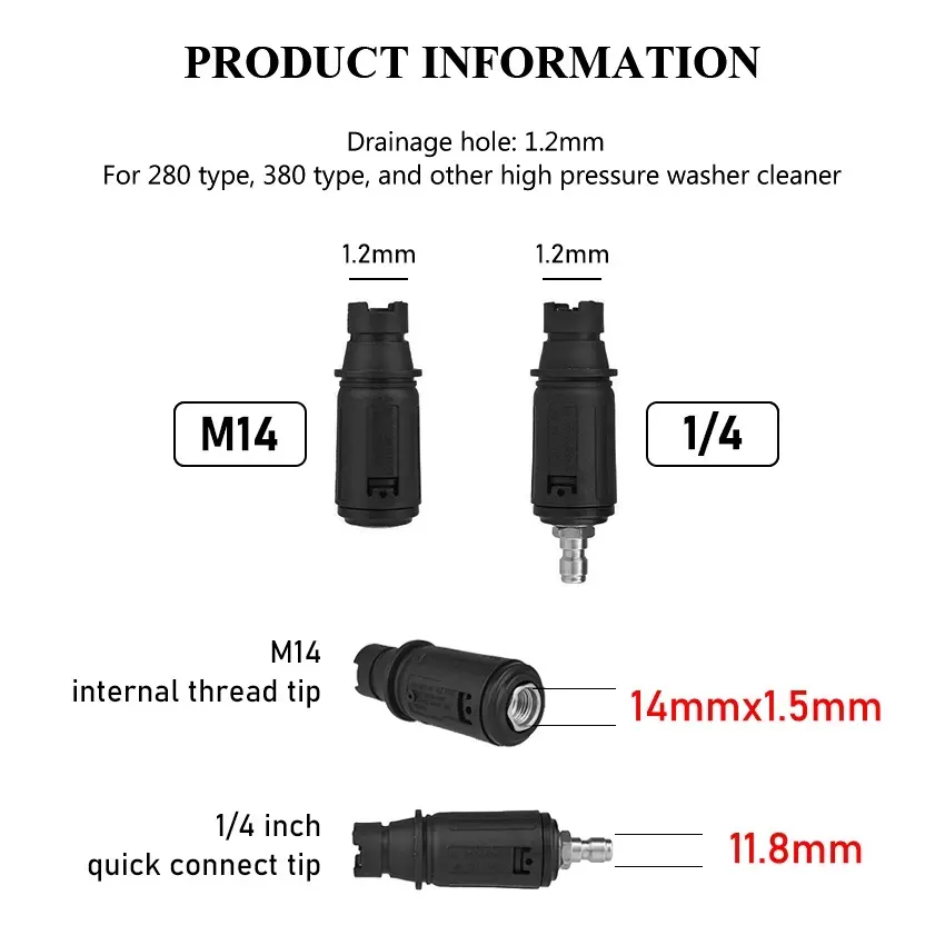 5. 1/4Inch / M14 Flat Nozzle /High Pressure Spray Cleaner Nozzle Rotating Head Universal