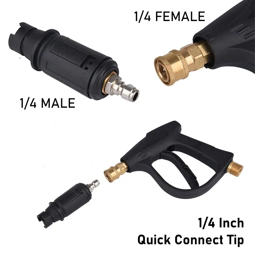 Keunggulan Produk: ● Penggantian nosel pencuci tekanan; ● Sesuaikan sudut semprotan antara 0 dan 60 derajat; ● Mesin cuci tekanan kerja dapat mencapai hingga 4000 PSI; ● Ini kompatibel dengan hampir semua senjata mesin cuci tekanan dan tongkat dengan konektor cepat 1/4 inci.