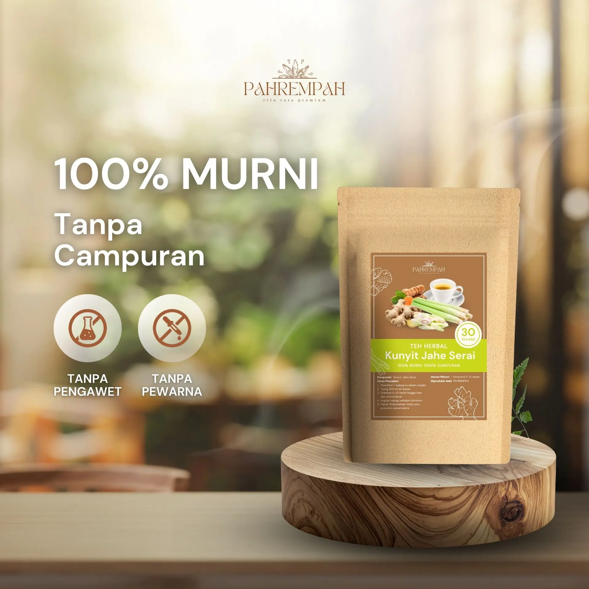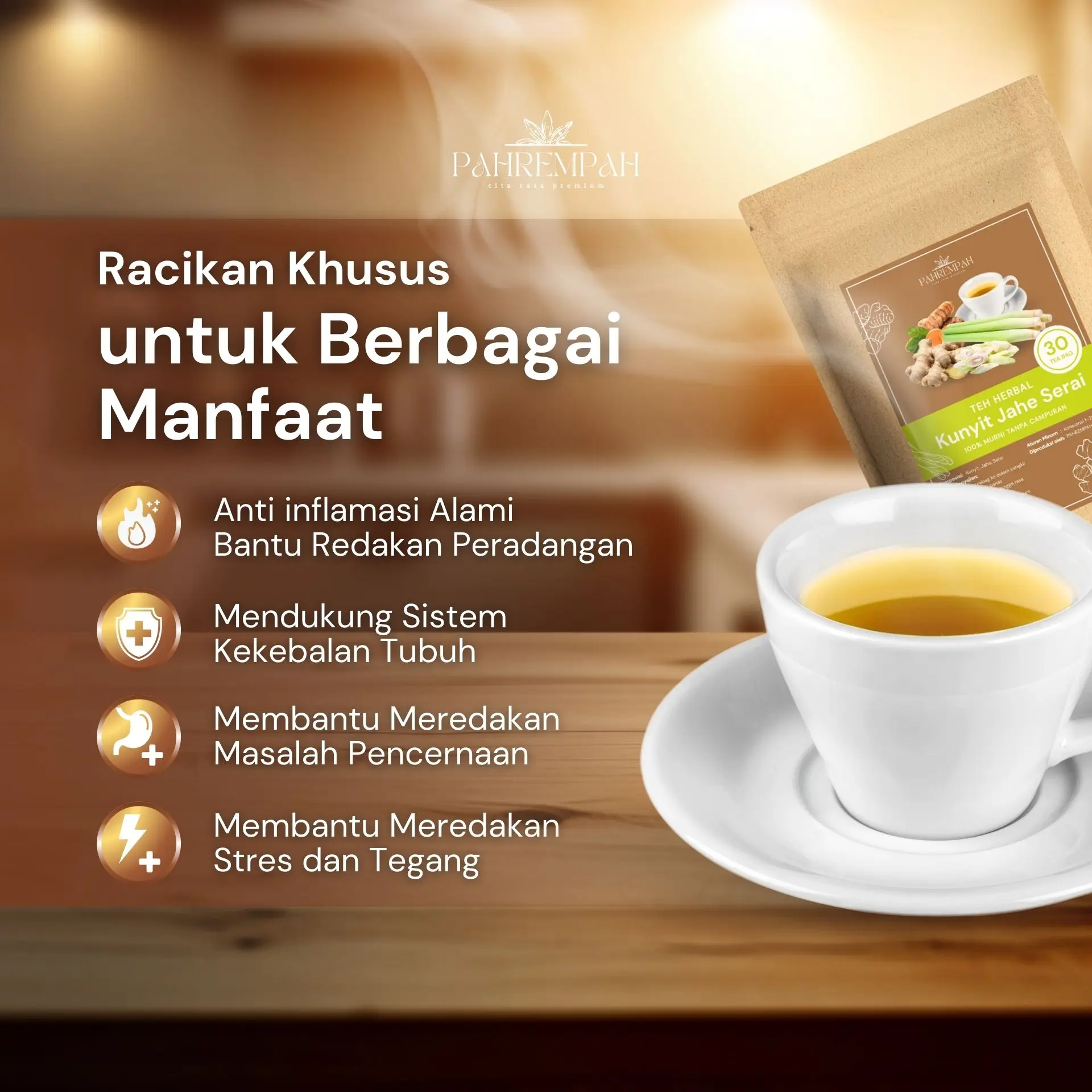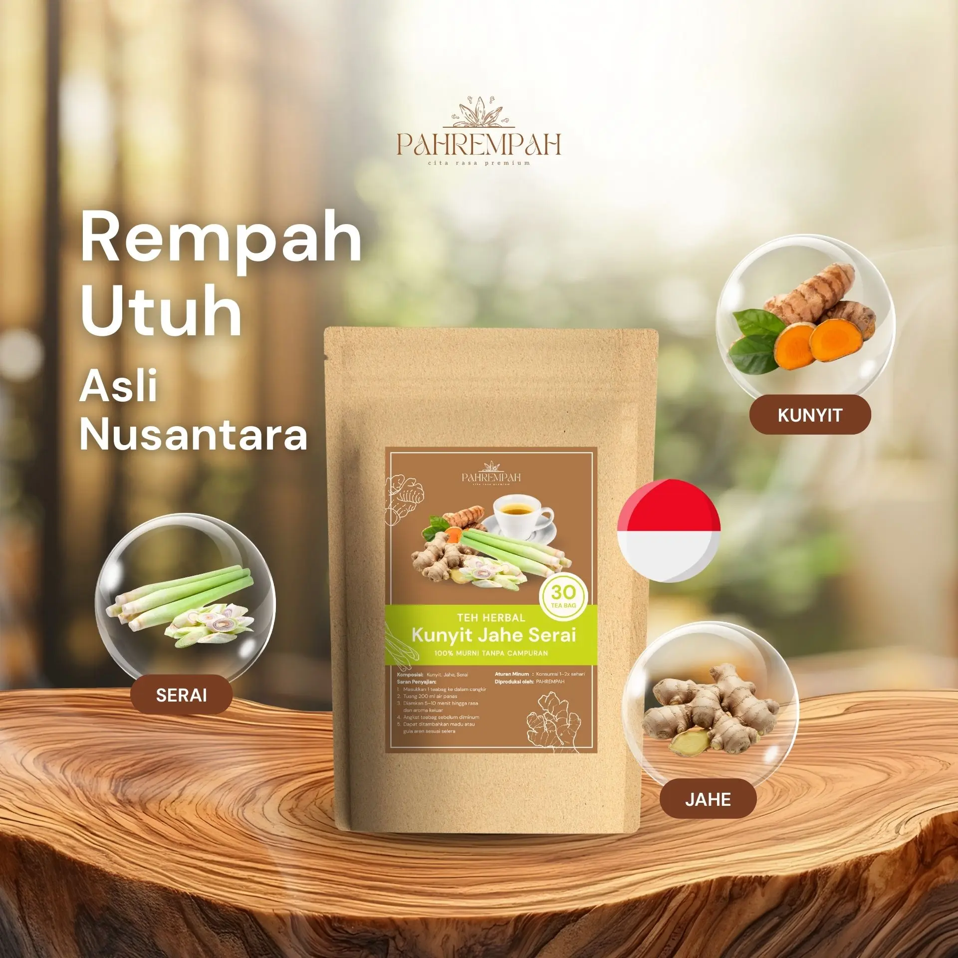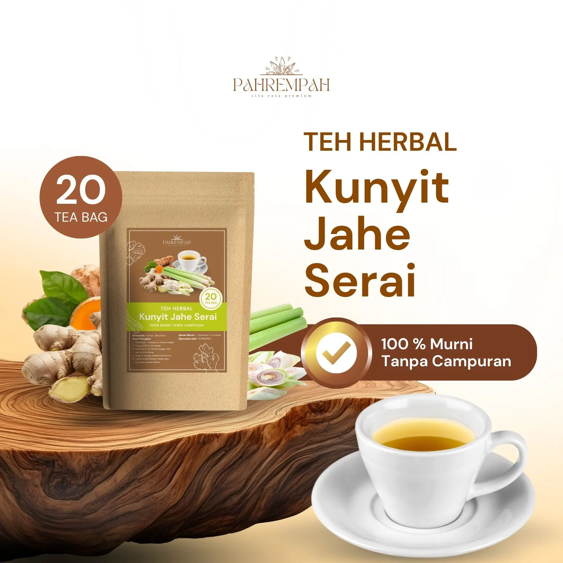 Mulai hari dengan yang alami. Perpaduan hangat Kunyit, Jahe, dan Sereh nggak cuma menenangkan pikiran, tapi juga membersihkan tubuh dari dalam