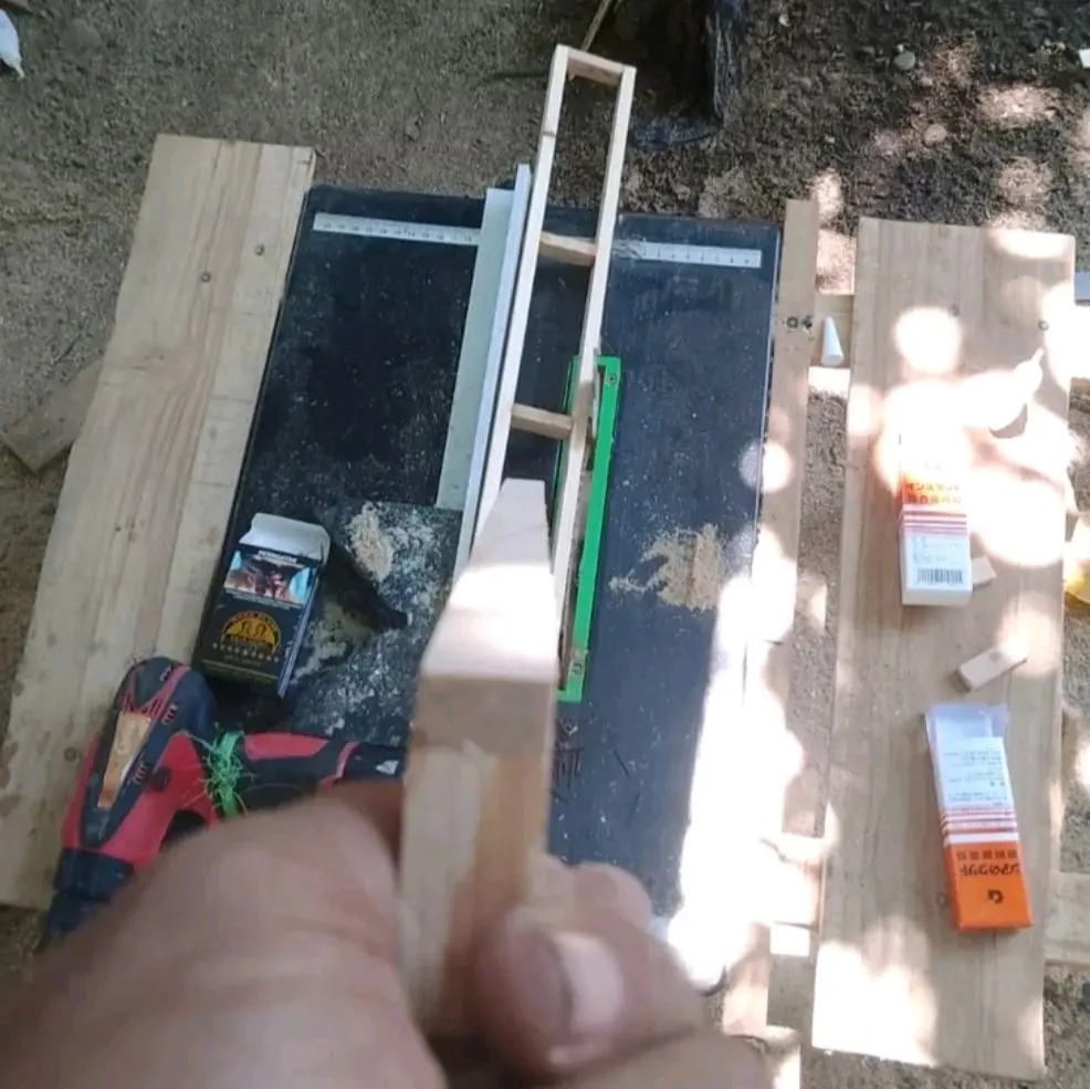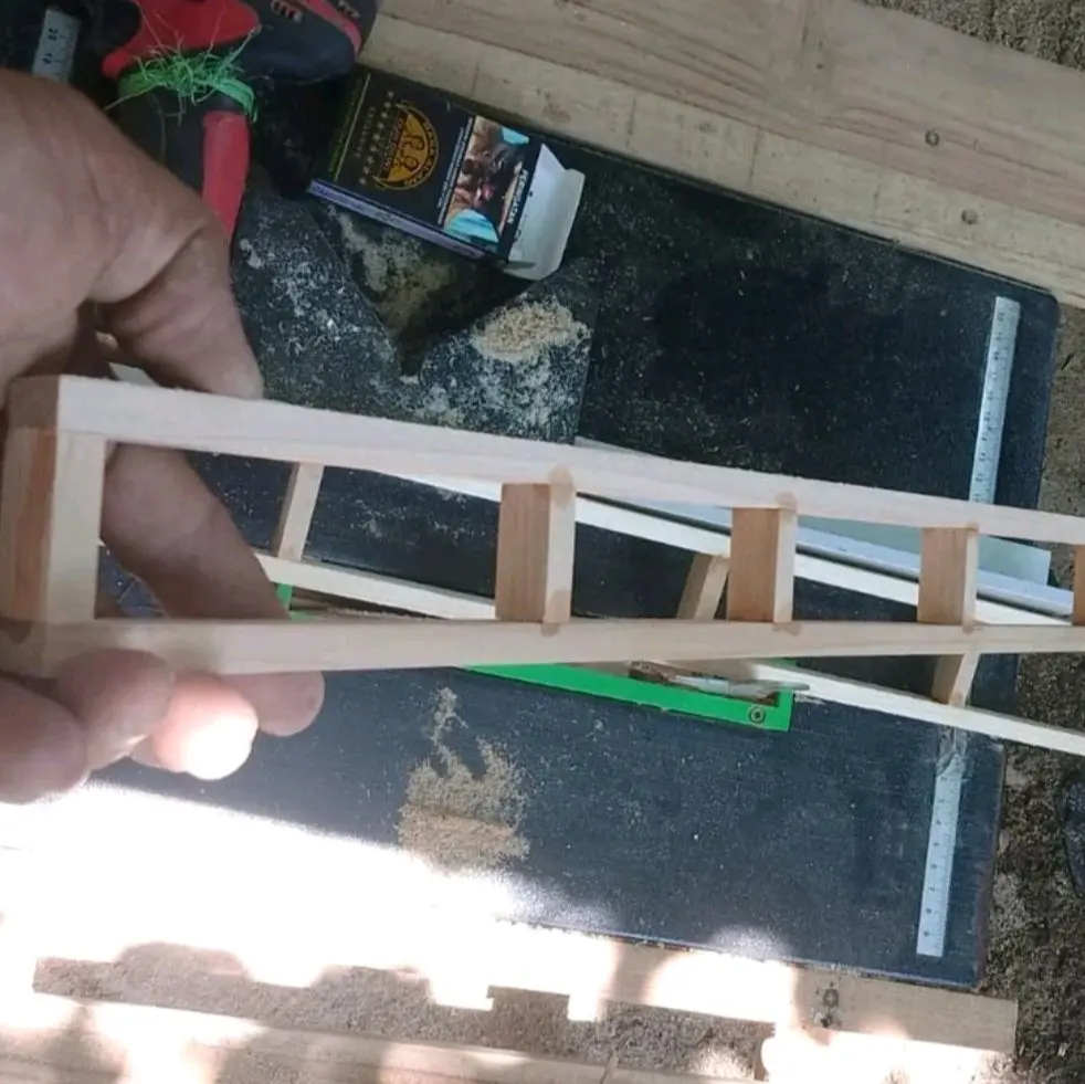 ·Sasis truk mini dengan ukuran 30cm x 4cm, terbuat dari bahan kayu.