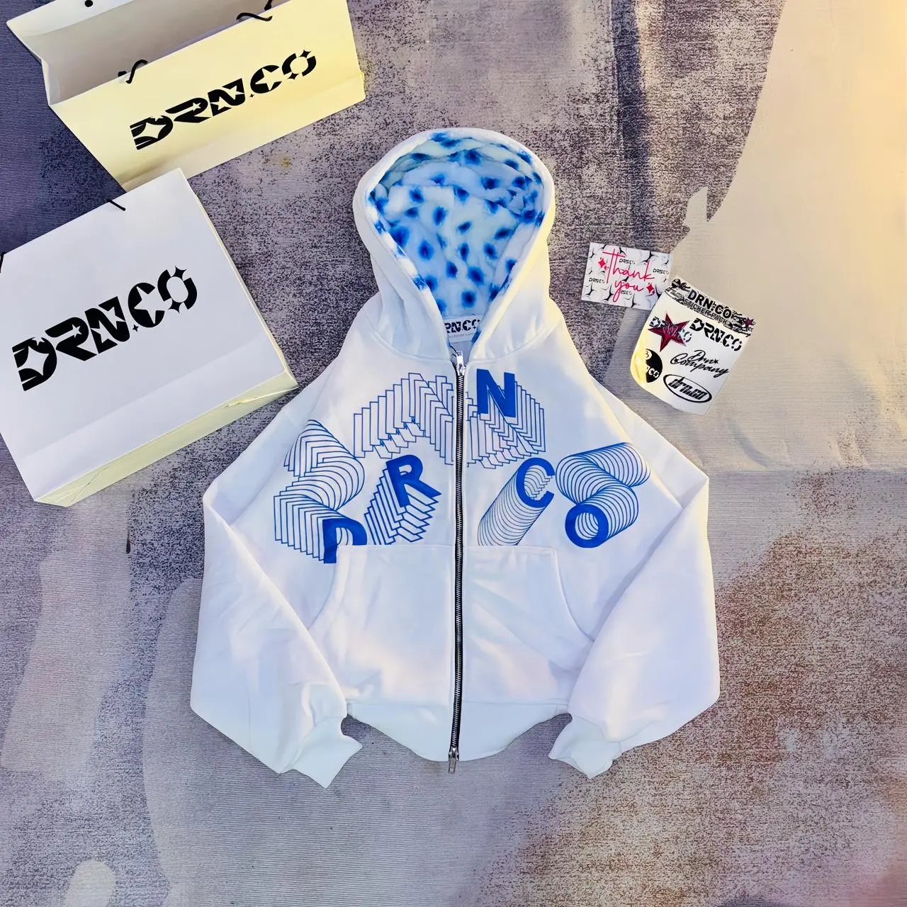 Hoodie BOXY zipper DRN.CO 1996 Sablon Foaming Sherva Bercak warna bahan Premium
