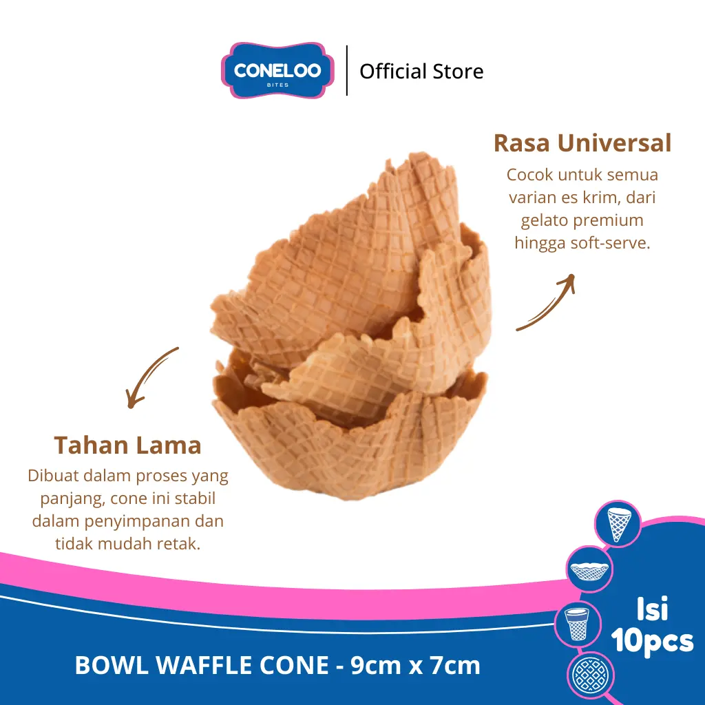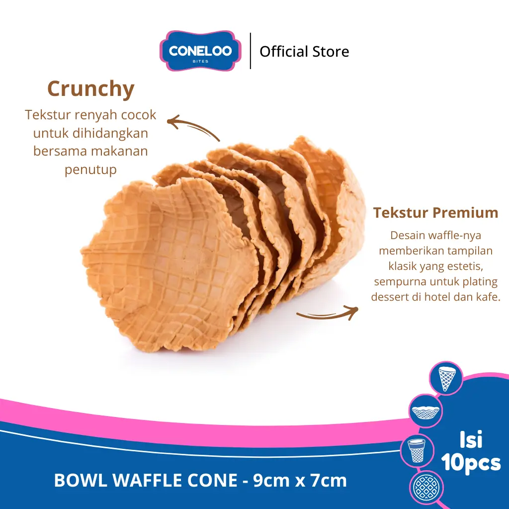 Pesan Sekarang! Tambahkan sentuhan premium pada sajian Anda bersama Coneloo Bites Bowl Waffle. Setiap gigitan adalah kebahagiaan!