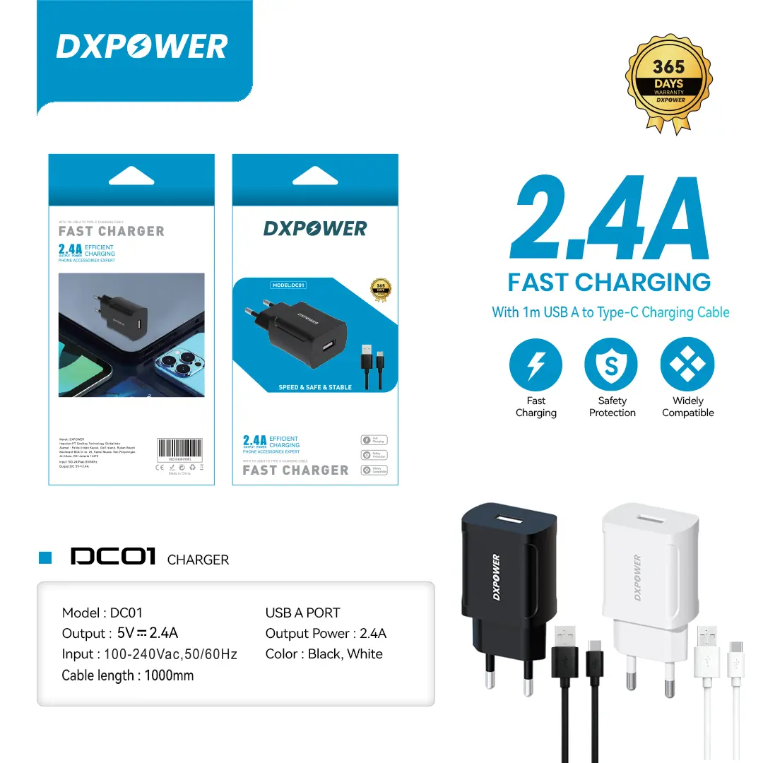 ยทDaya Output: 2.4A (DC01), 1.5A (DC02), 20W (DC03)