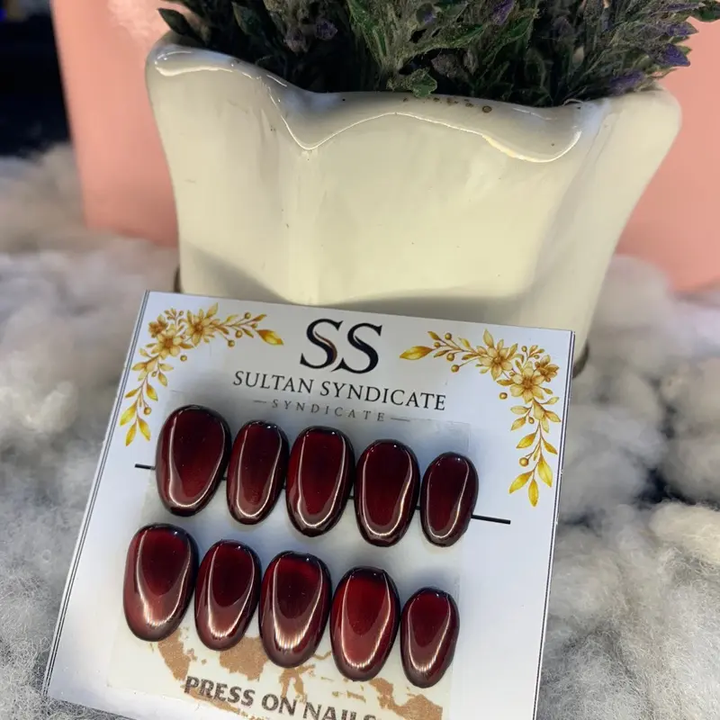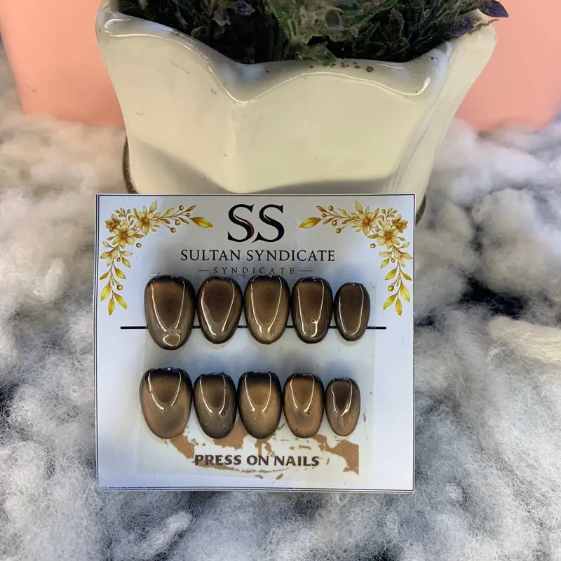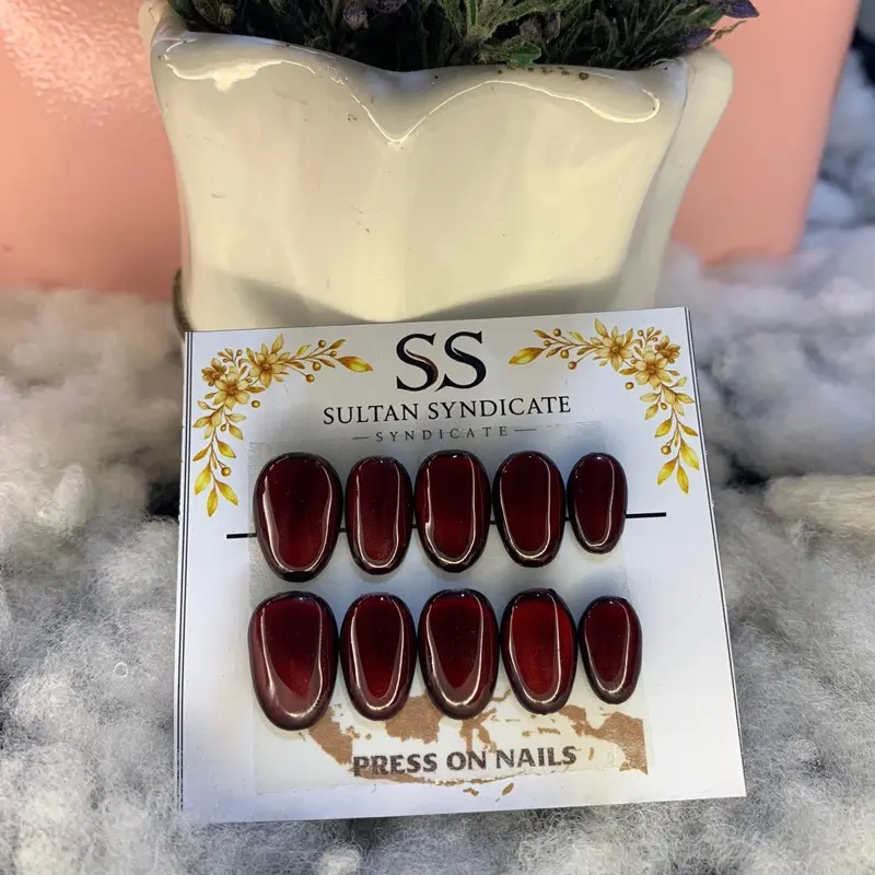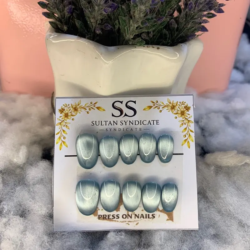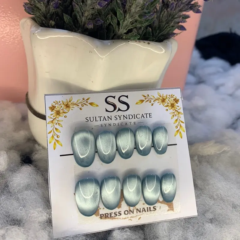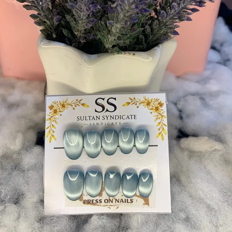 Press On Nails Hande Made SultanSyndicate Model Kuku Full Cat Eye Kuku Palsu Short Oval Free Lem Tempel Dan Kikir