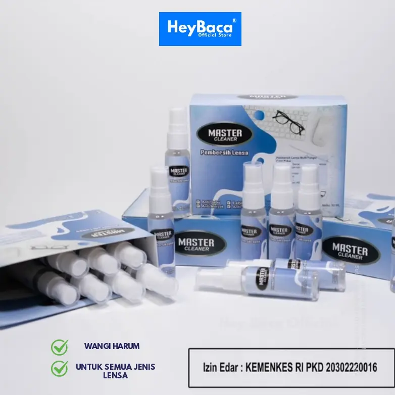 ·Pembersih Kacamata: HeyBaca Official menawarkan Pembersih Kacamata Master Cleaner dengan ukuran 27ml. Cocok untuk membersihkan lensa kacamata Anda. 🌟