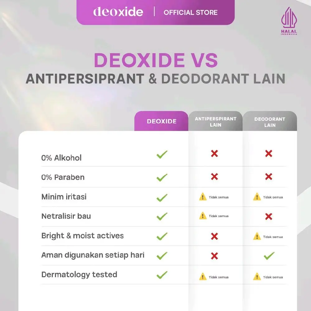 ✨ Deoxide Antiperspirant Deodorant Roll On BRIGHT+ untuk mencerahkan kulit Anda. Produk ini dirancang khusus untuk memberikan perlindungan antiperspiran dan deodoran dalam satu produk.