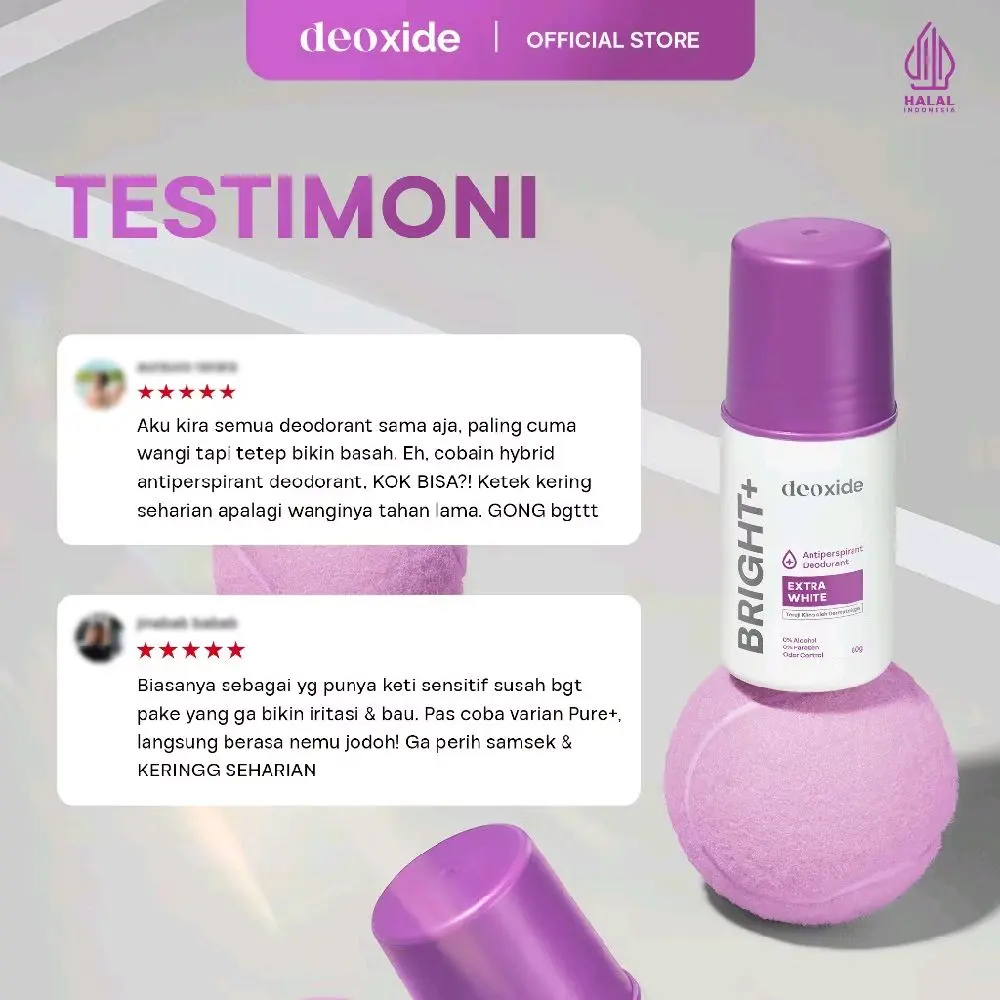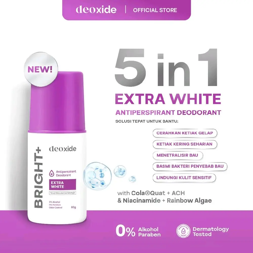 5. Deoxide Deodorant Roll On BRIGHT+ Extra White 5in1 Untuk Cerahkan Ketiak Gelap & Kering Sehari-hari