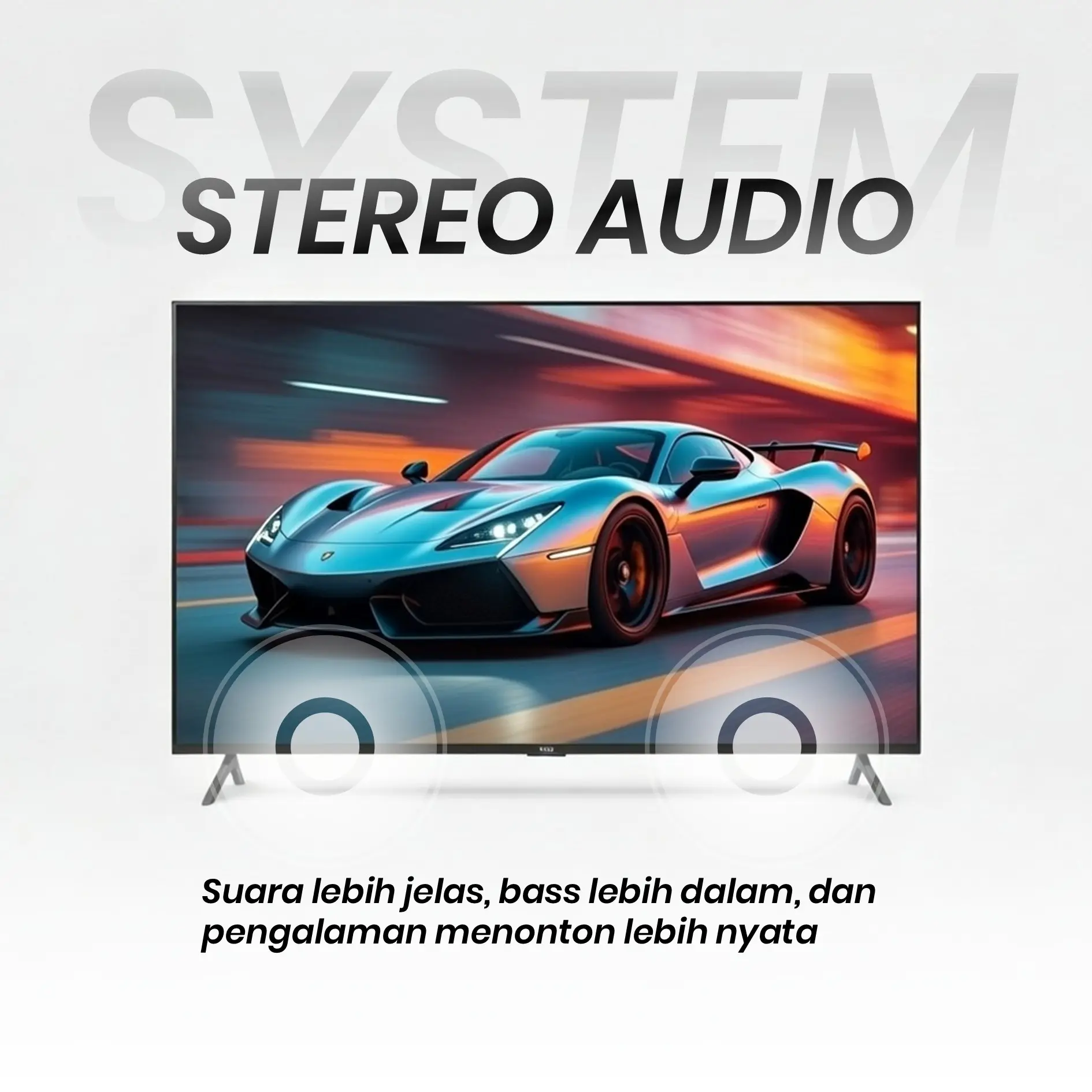 Layar LED HD 1920 × 1080 memberikan tampilan tajam, warna cerah, serta nyaman untuk menonton film, acara TV, hingga bermain game. Desainnya yang tipis dan modern cocok untuk ruang keluarga, kamar tidur, atau ruang kerja.