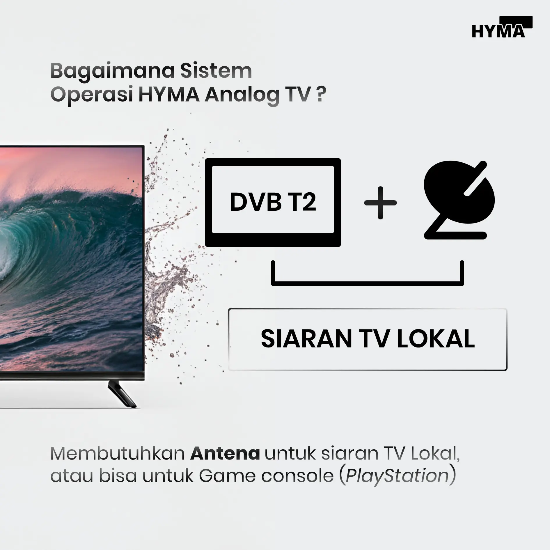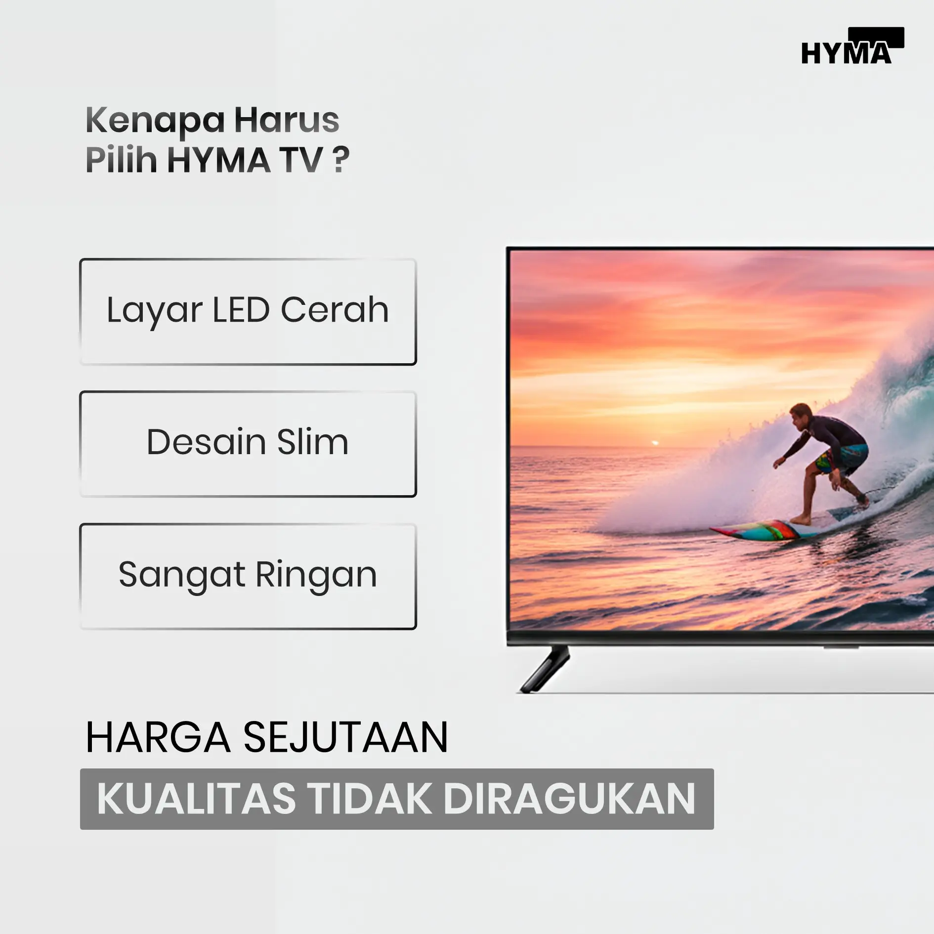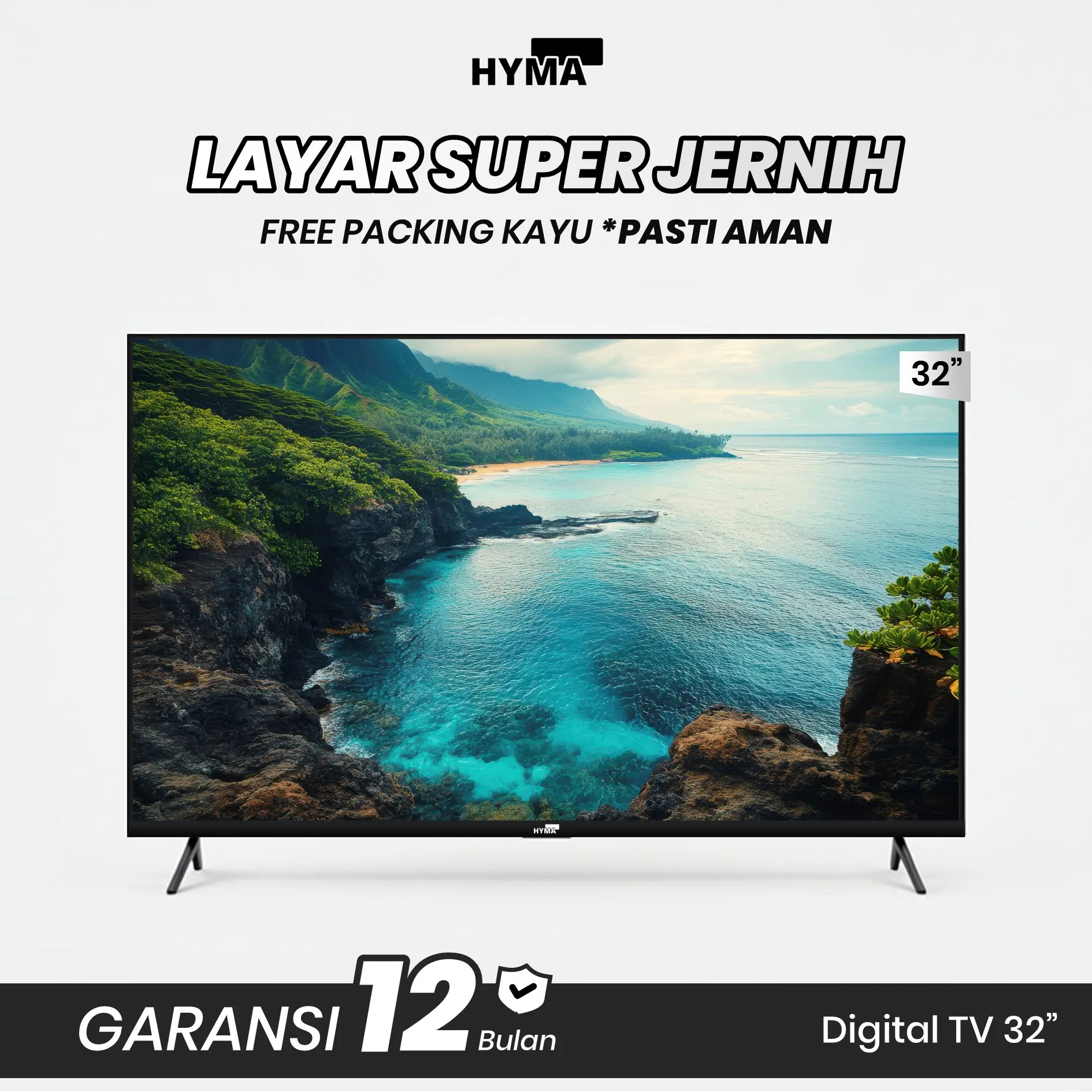 HYMA Digital DVB-T2 TV 32 Inch Layar Jernih HD 1920 x 1080 Garansi 12 Bulan