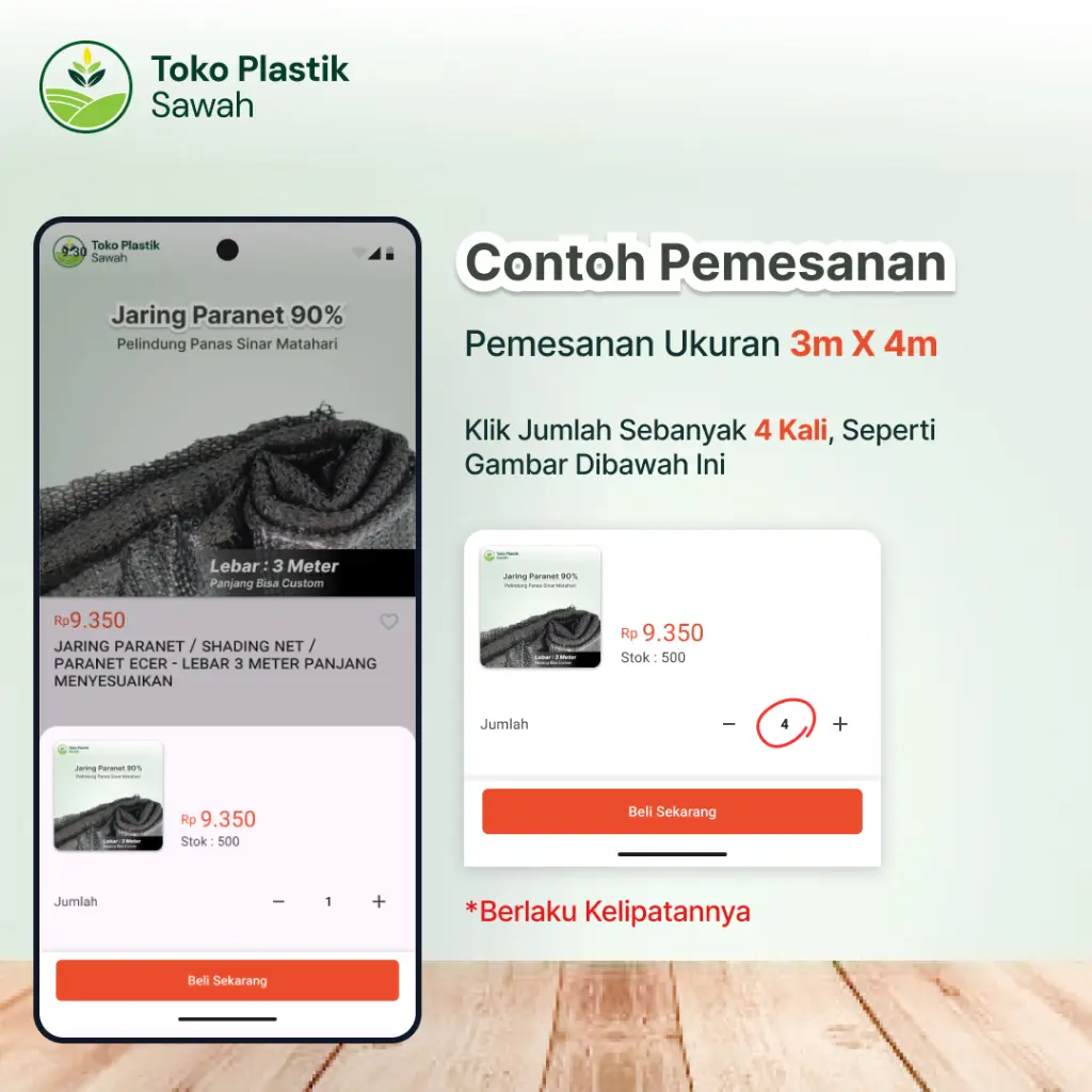 - Jadi misalkan kamu membutuhkan panjang 5 meter, silahkan klik beli 5 maka kamu akan mendapatkan lebar 3 meter x panjang 5 meter.