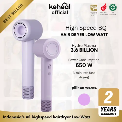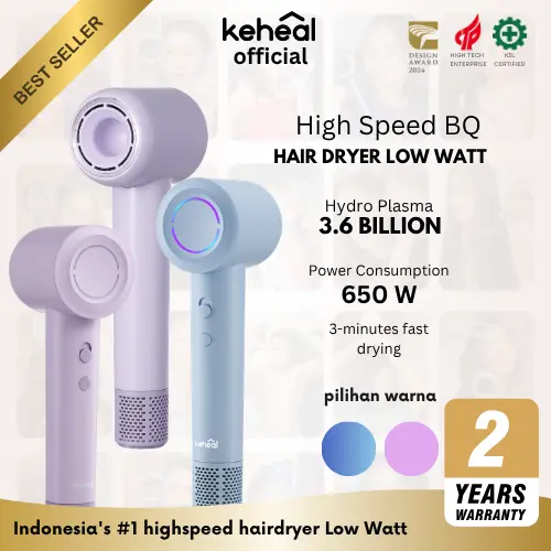 ✨ KEHEAL BQ High Speed Hair Dryer adalah pengering rambut profesional dengan daya 650W dan tegangan 220V~50Hz. Kecepatan motor mencapai 105,000 rpm, memberikan kecepatan angin 22m/s. Kabel panjang 1.7m dan 2 mode kecepatan angin. Kontrol suhu 100 kali/s dan 3 level suhu (cold, warm, hot).