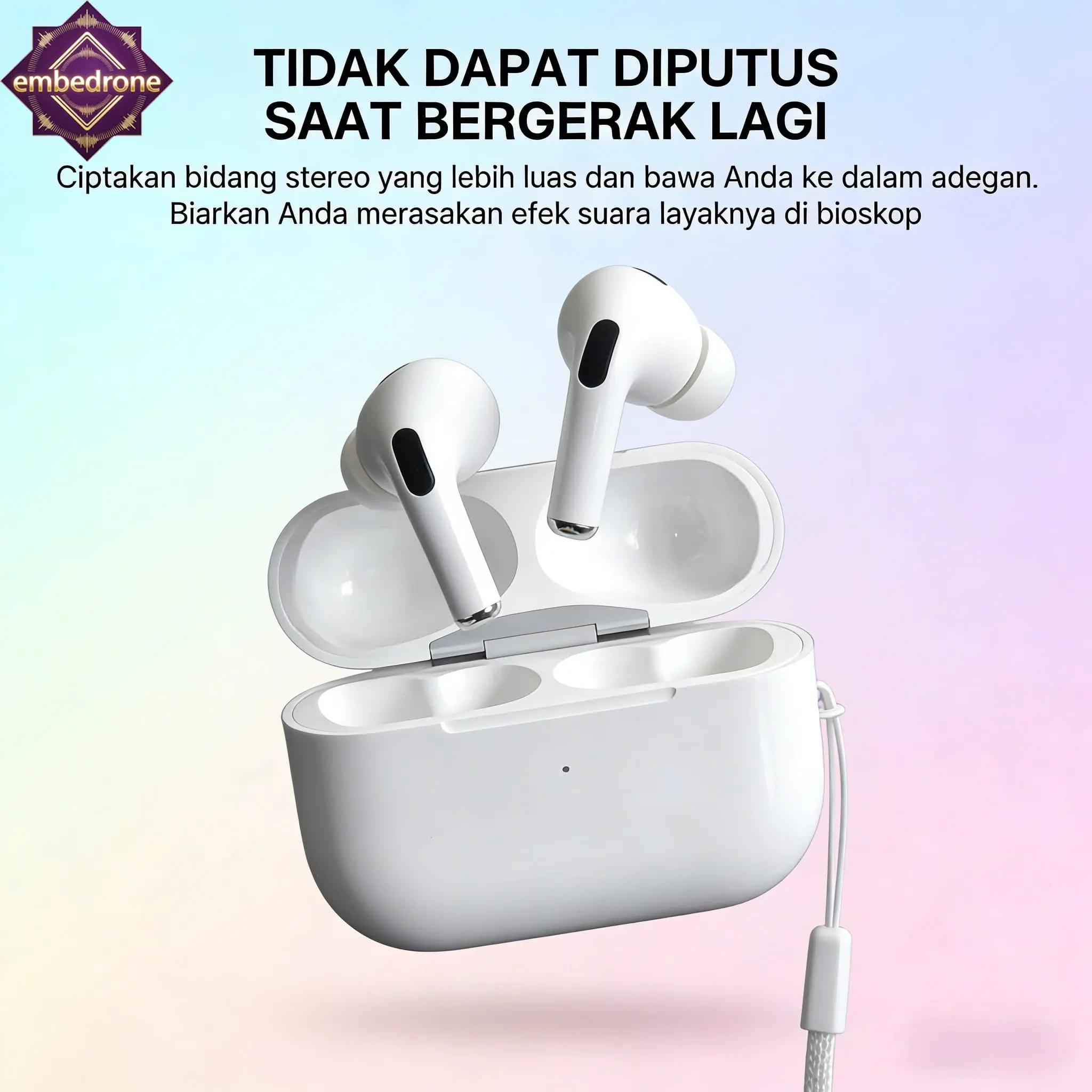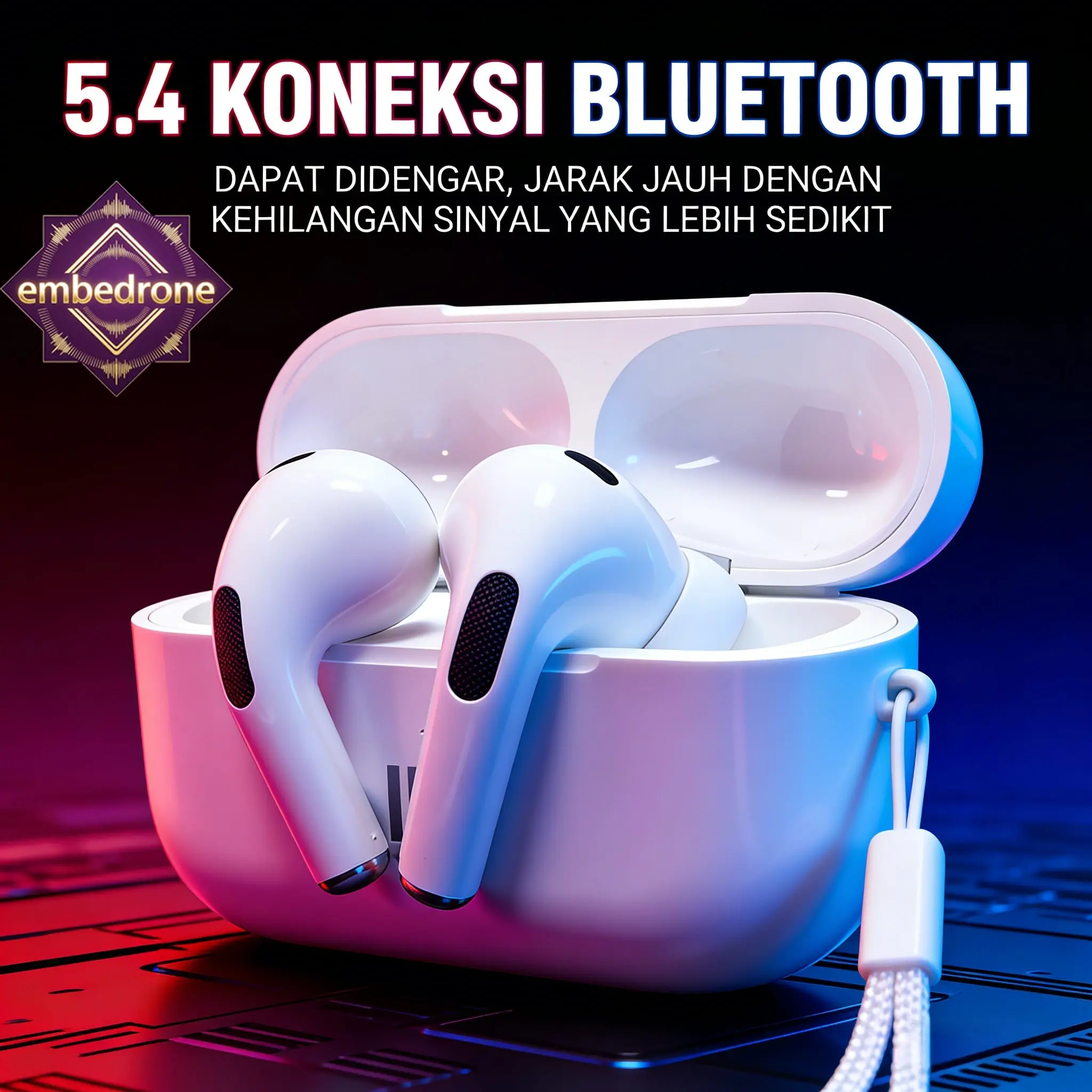 embedrone 2026 NEW PHANTOM ANK50 EarphoneNirkabel, Anti Air Dalam, Baterai Tahan Lama, TWS, BassKuat, Surround 3D, Peredam Suara Cerdas, Gaming,Panggilan, Musik, Olahraga, Earphone Bluetooth Nirkabel