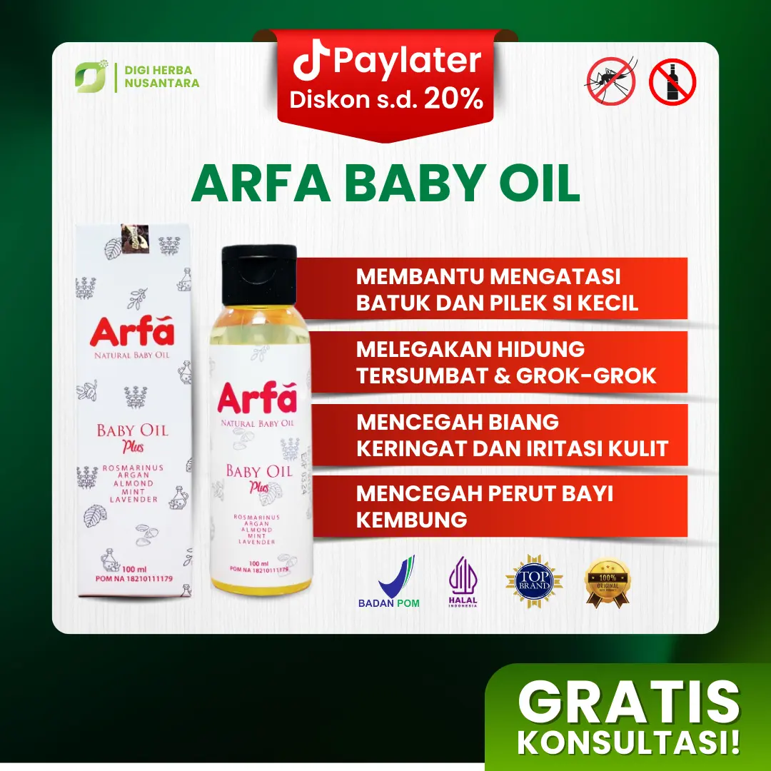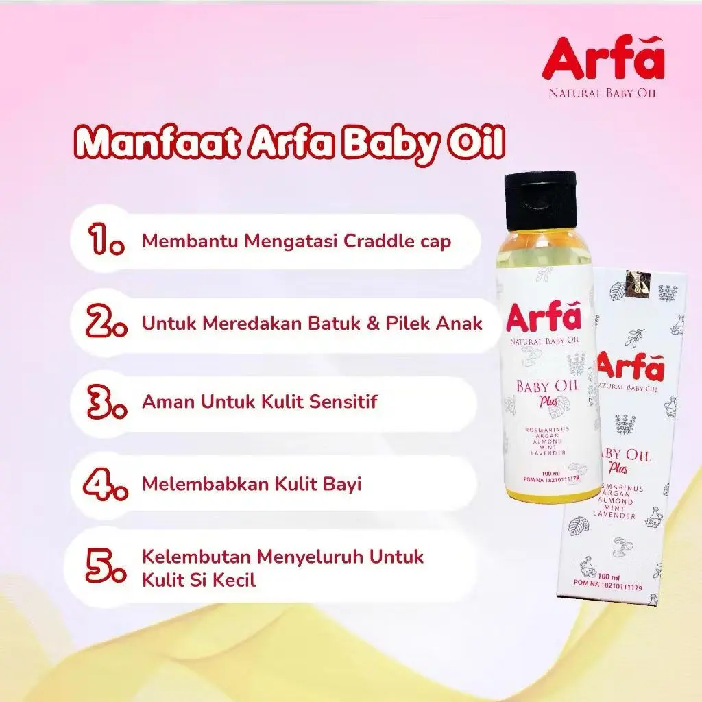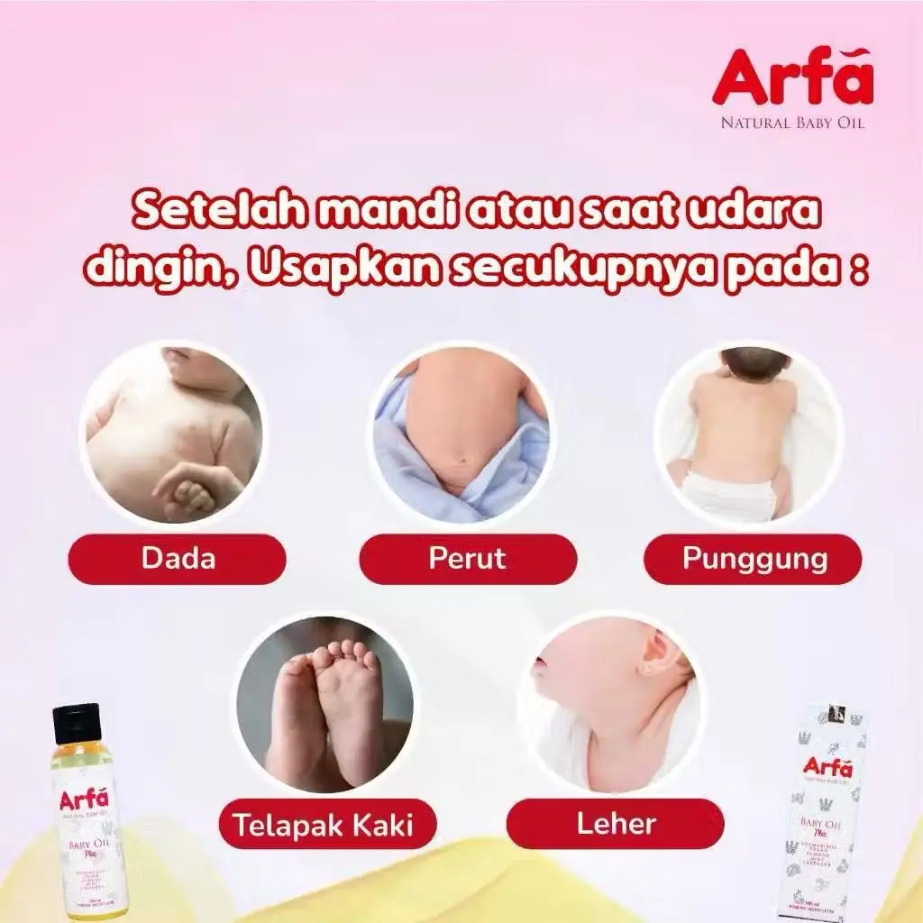 Arfa Baby Oil adalah minyak telon khusus bayi dan anak yang memberikan sensasi hangat nyaman, membantu merawat kulit, serta cocok untuk kulit sensitif. Diproses menggunakan teknologi tinggi dan telah melalui uji klinis, produk ini juga bersertifikat HALAL MUI, sehingga aman digunakan setiap hari untuk si kecil.