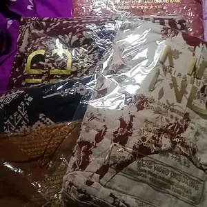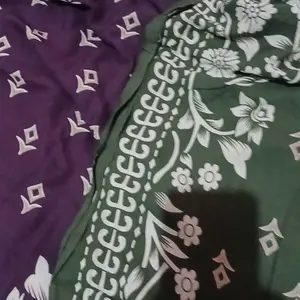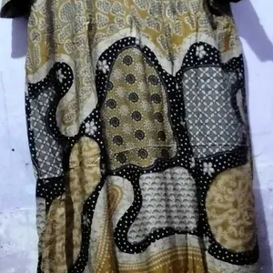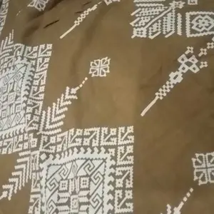 Bahan adem, meski mudah kusut, semoga tdk luntur dan tdk menggulung keatas / menyusut.