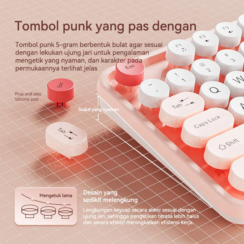 Keycap Model PUNK (Cekung & Empuk) – Suara klik halus, nggak bising, bouncing nyaman di jari