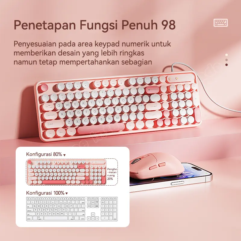 98 Tombol dengan Fungsi Lengkap – Lebih hemat meja (mirip 104 tombol tapi ukuran lebih kecil)