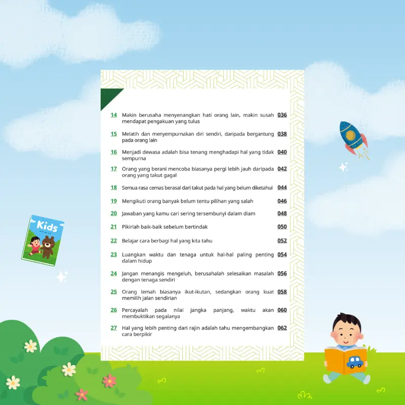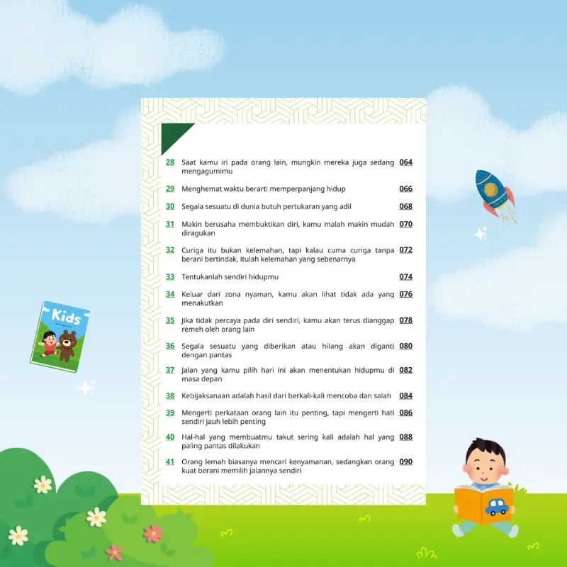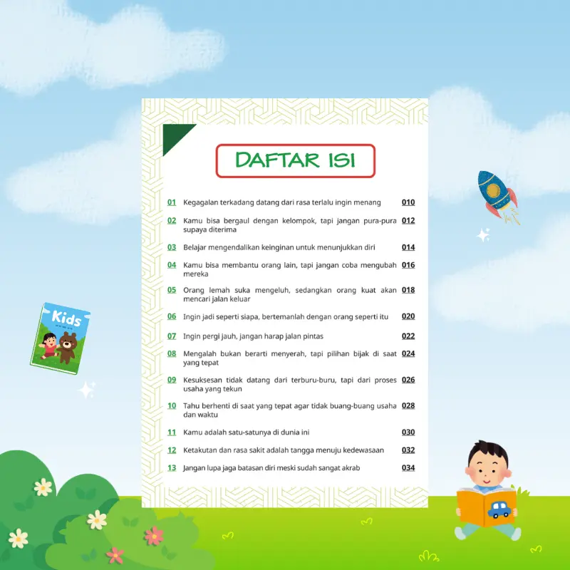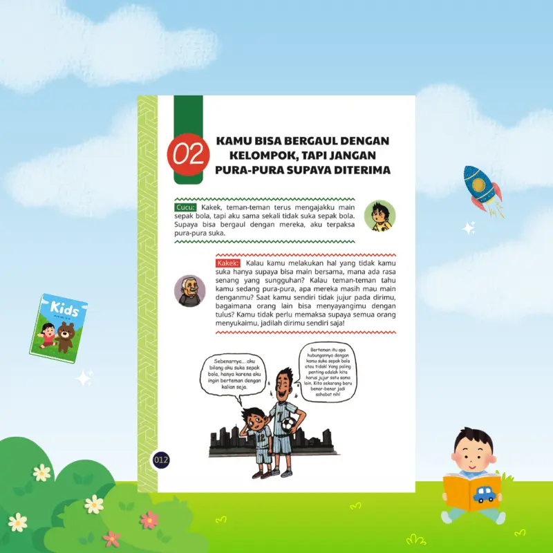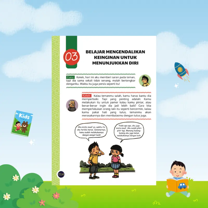 Buku ini bukan sekadar komik, tetapi alat bantu pendidikan yang membantu anak mengenali diri sendiri, emosi, dan cara berpikirnya. Setiap cerita dirancang berdasarkan situasi nyata yang sering dialami anak dalam kehidupan sehari-hari.