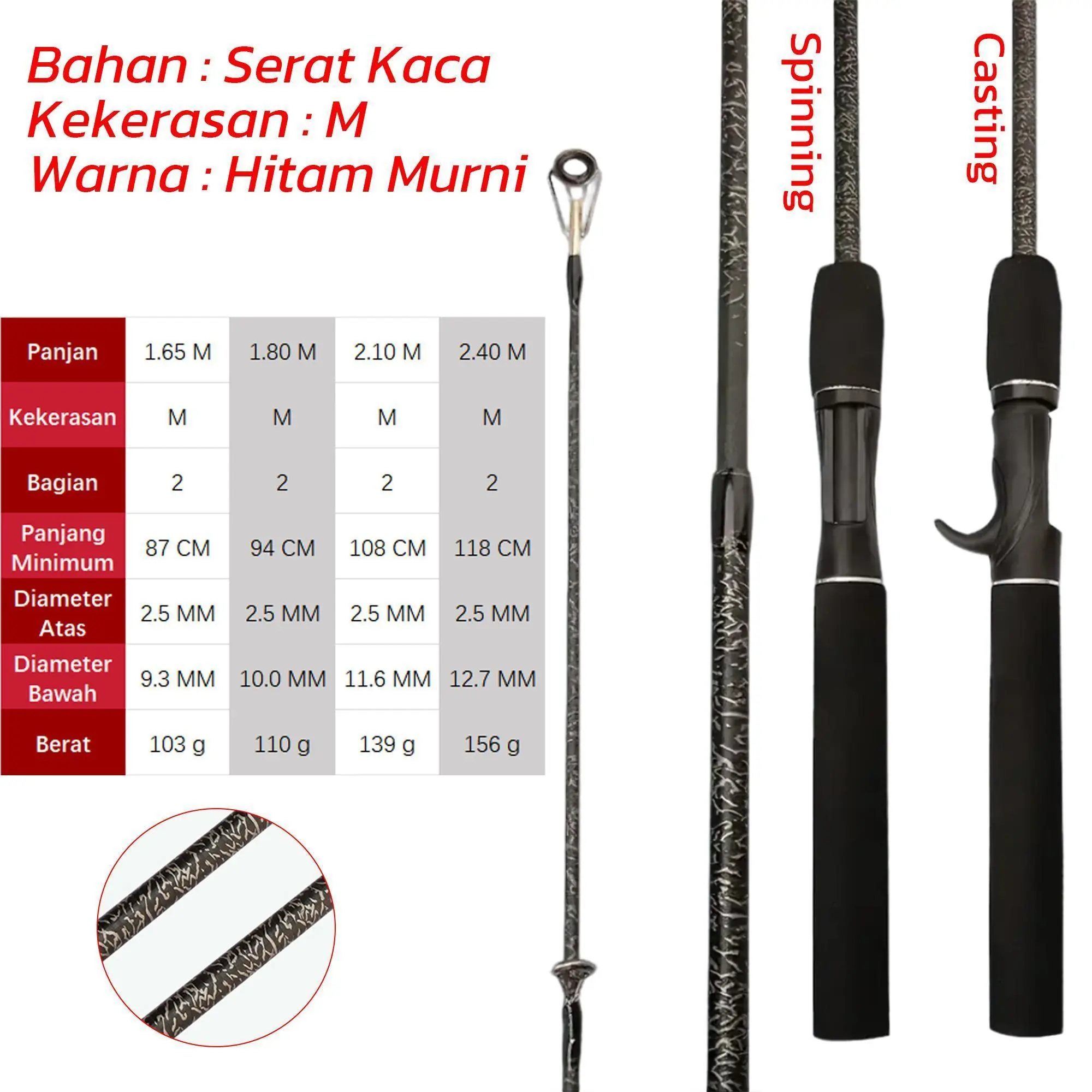 ·Bahan: Terbuat dari Serat Kaca berkualitas, kombinasi sempurna antara fleksibilitas dan kekuatan untuk menghadapi berbagai jenis ikan.