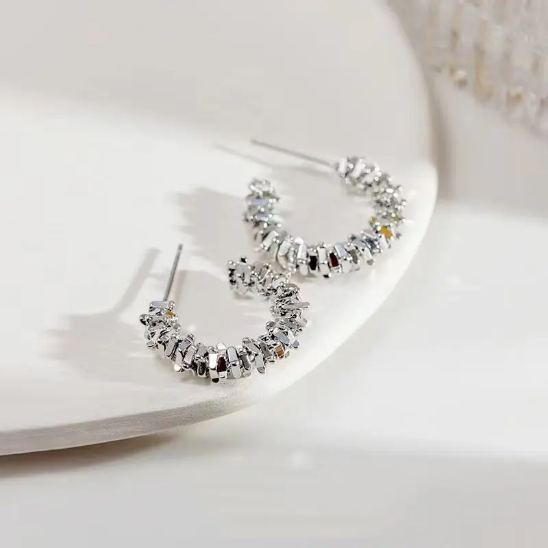 [Cantik]Anting C Bentuk Pecahan Emas dan Perak untuk Wanita Anting Serbaguna Tahan Luntur Anti Alergi B556