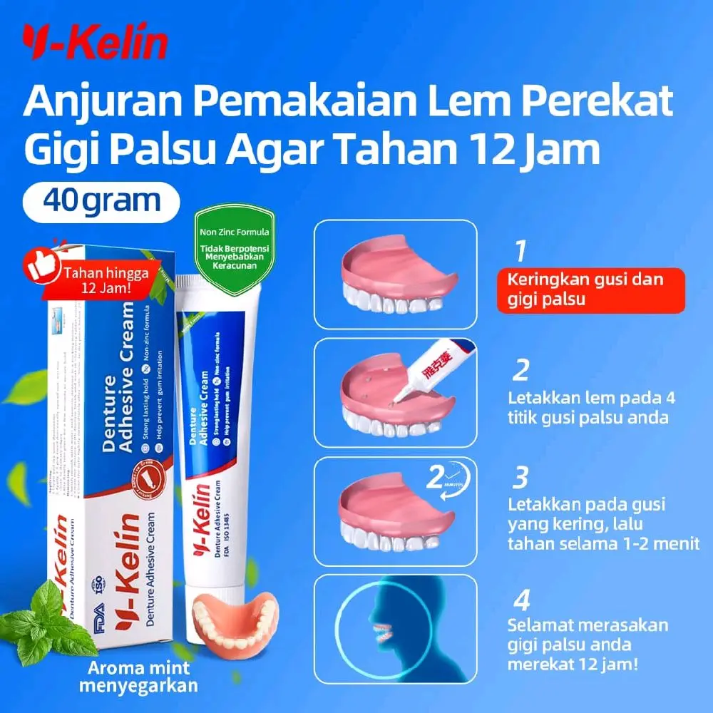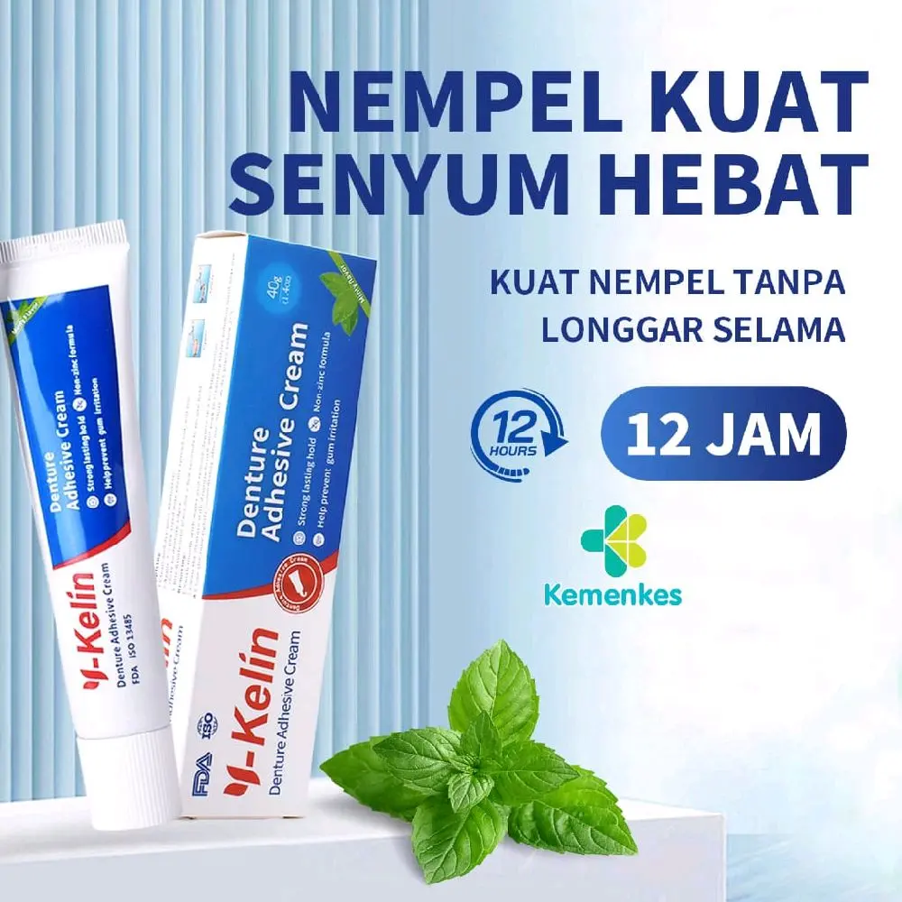 Ā·Produk Utama: Lem krim perekat gigi palsu tiruan Y-Kelin 40 gr. Cocok untuk penggunaan sehari-hari.